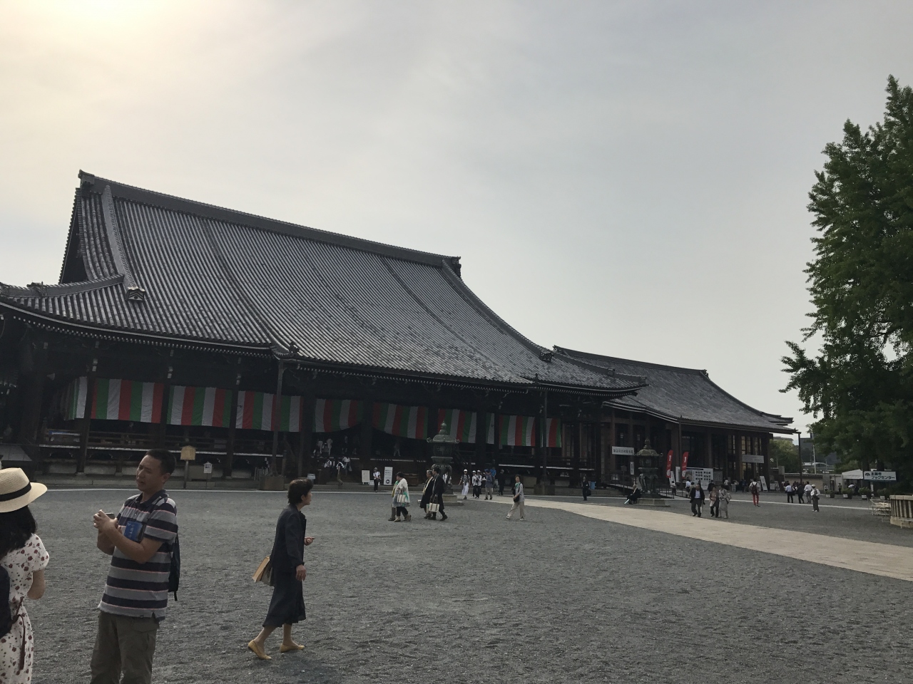 法要時にお邪魔したので、緑白黒赤の独特な垂れ幕がかかっていました。大きな屋根が特徴的ですが、広々した内部もとても立派です。廊下の端から端まで歩く結構な距離があることがわかります。修行僧はいっぱいいるでしょうが、掃除が大変そうですね。