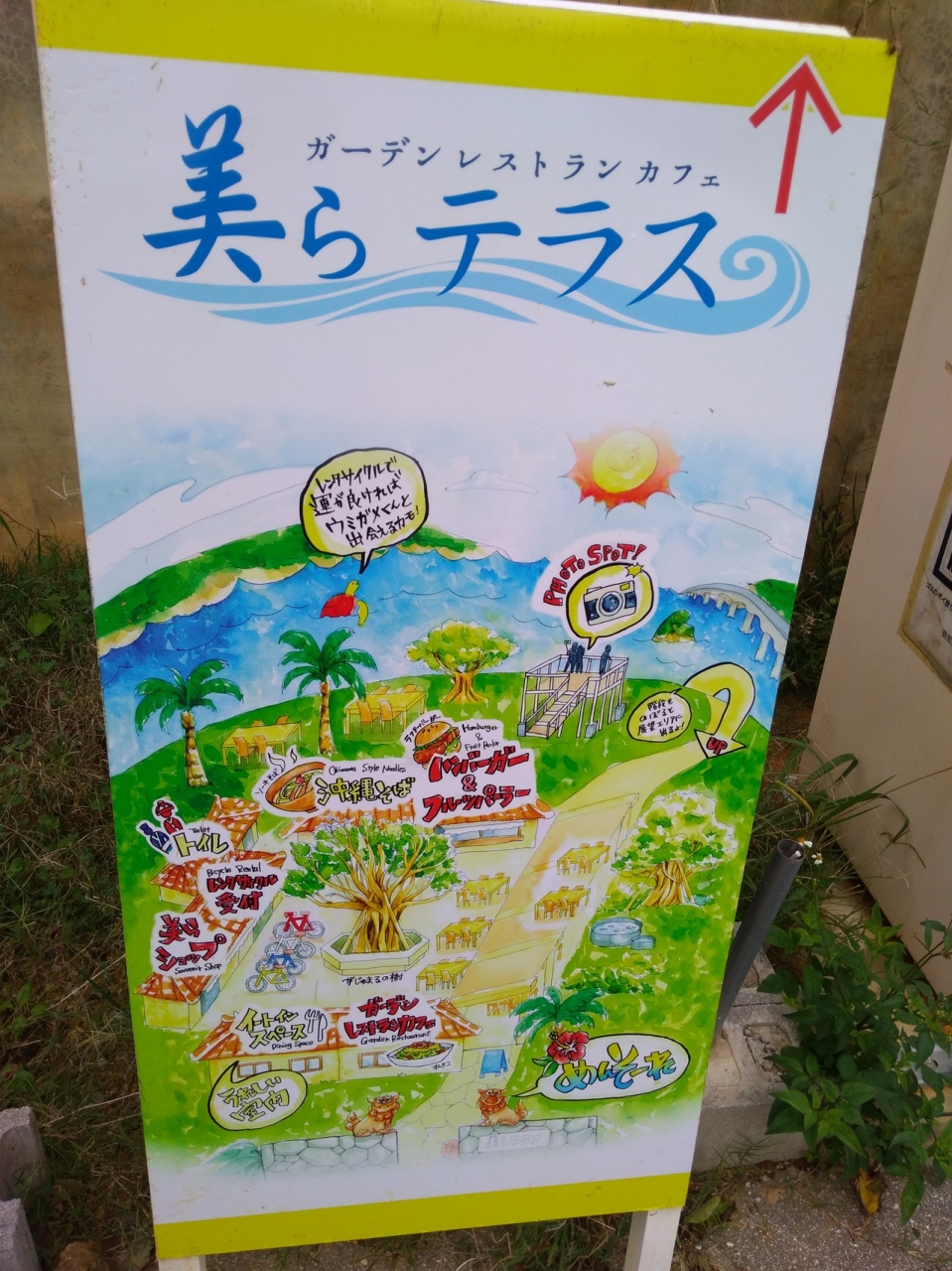 食事はハンバーガーや沖縄独特の麺などがありました。テラス席なので風を受けながら食事ができます。