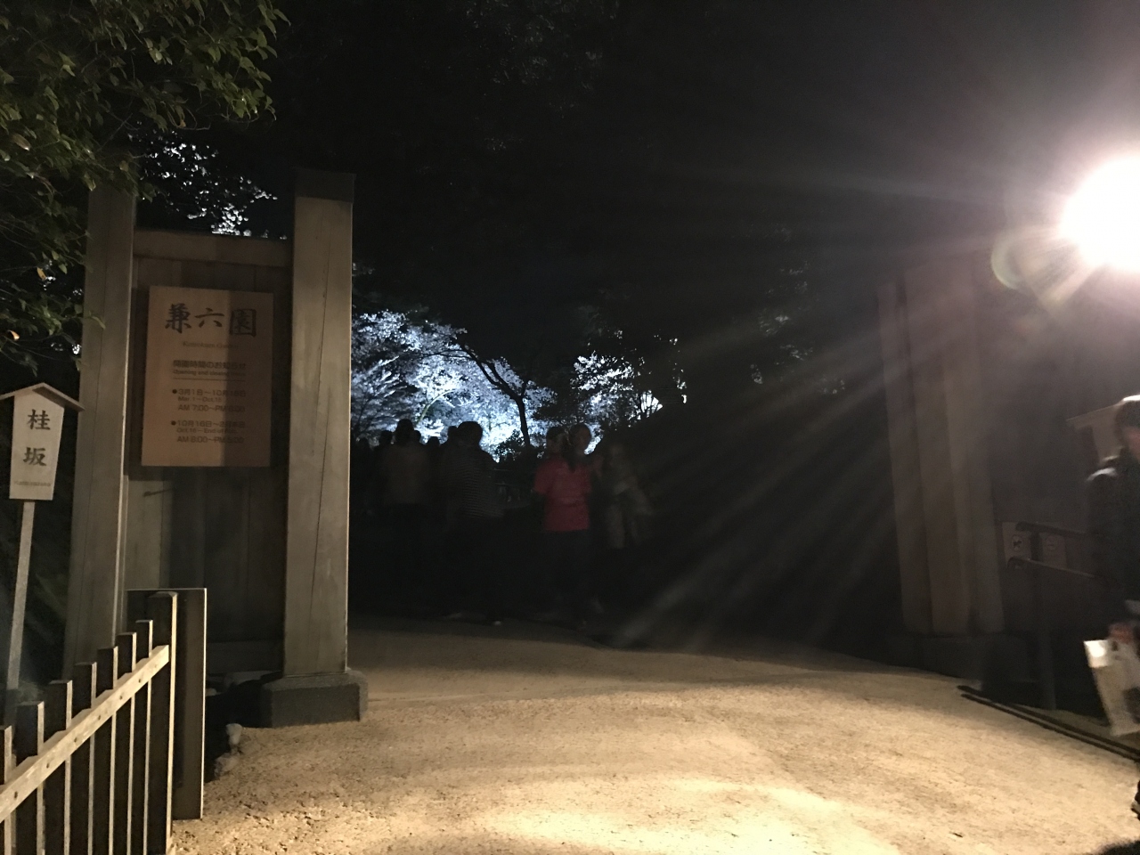 桜の時期の夜間ライトアップ。無料で開放してくれています。すごい人ですが、ライトアップされていても、意外と暗い。足元がかなり暗いので注意です。桜は沢山咲いているので、しっとりした花見が体験できました。思ったよりはライトが少ないなという感じです。有料にしてもう少しライトアップしても良いかと思う。