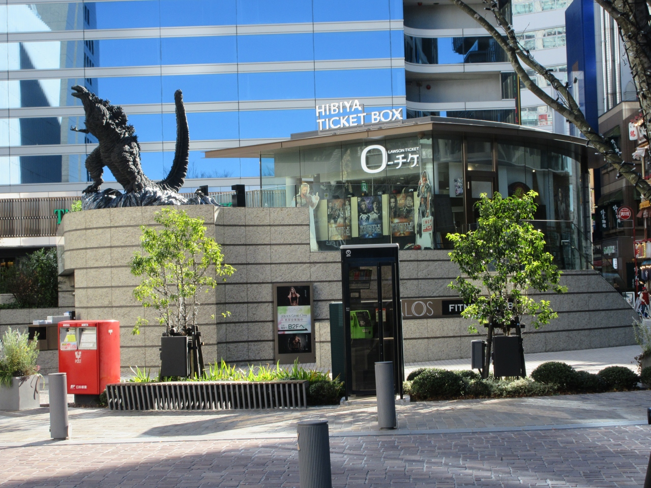 1年前、日比谷シャンテ前に像が置かれているという話を聞き訪れたことがありましたが、その時は工事中だったため見ることができませんでした。今回東京ミッドタウン日比谷を訪れた際、入り口前に建っているのを偶然見つけました。立派な台座の上にシンゴジラが構えている大きな像です。近くに東宝シネマがあることからミッドタウン入口に建っているのだと思います。とても目立ち、写真を撮っている人も見かけました。ミッドタウン4階にある東宝シネマ受付近くにもゴジラ像が建っていましたが、多くの人がいるにもかかわらず目を向ける人はいませんでした。映画の上映から2年もすると飽きられてしまうのでしょうか、残念に思いました。
