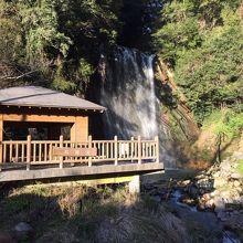 丸尾温泉から脇道を下って行くと見事な滝があります。近くに車を数台停められるスペースもありました。近くには見物するための小屋がありましたが、通行止になっていて立ち寄ることはできませんでした。道から眺めていただけですが、かなりの水量に圧倒されました。
