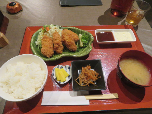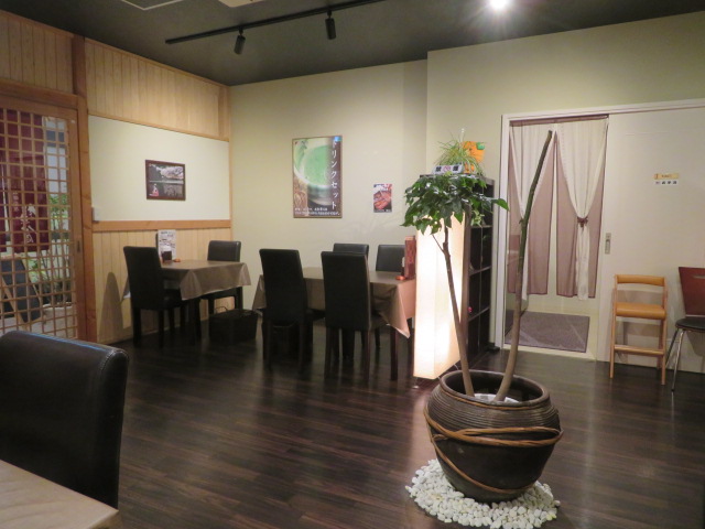 松山市街の中心にある銀天街のアーケード街にあるカフェ・レストラン、姫路発祥の町家カフェの全国チェーンです、入口から落ち着ける雰囲気の店内でした、甘味処でもありわらび餅が人気のようです、定食やそばが各種あり定食は1000円位からあります、今回はカキフライ定食を食べました、みそ汁はちょっと温かったです。