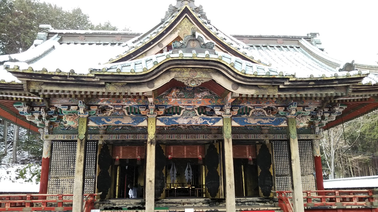急な石段を上ると拝殿が急に現れました。豪華な装飾の唐門は200円で拝観できます。御朱印はいただくことができました。神職によると、石段から唐門を見えないように作っているそうです。坂本ケーブルカーの駐車場が目の前にあります。