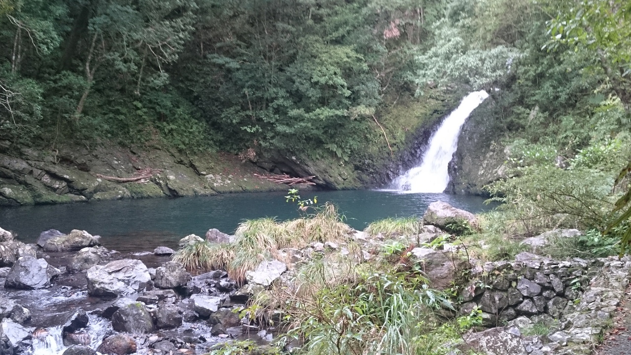 海そいの道路に案内標識があり、案内に従い、山に入り、10キロ近く登る。五六台の駐車場があり、反対側を数分下ると小さな滝がある。ただそれだけだが、滝を見ていれば、厳かな雰囲気になるのは不思議である。しかし、小さい。