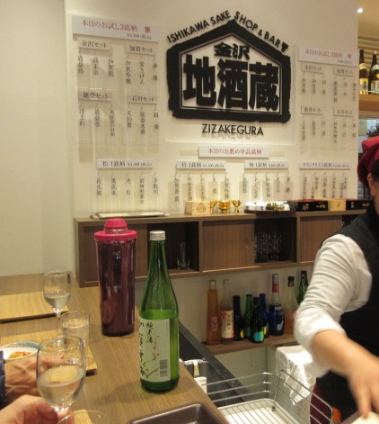金沢駅の百番街の中、カウンター席で気軽に地酒を飲めます。
