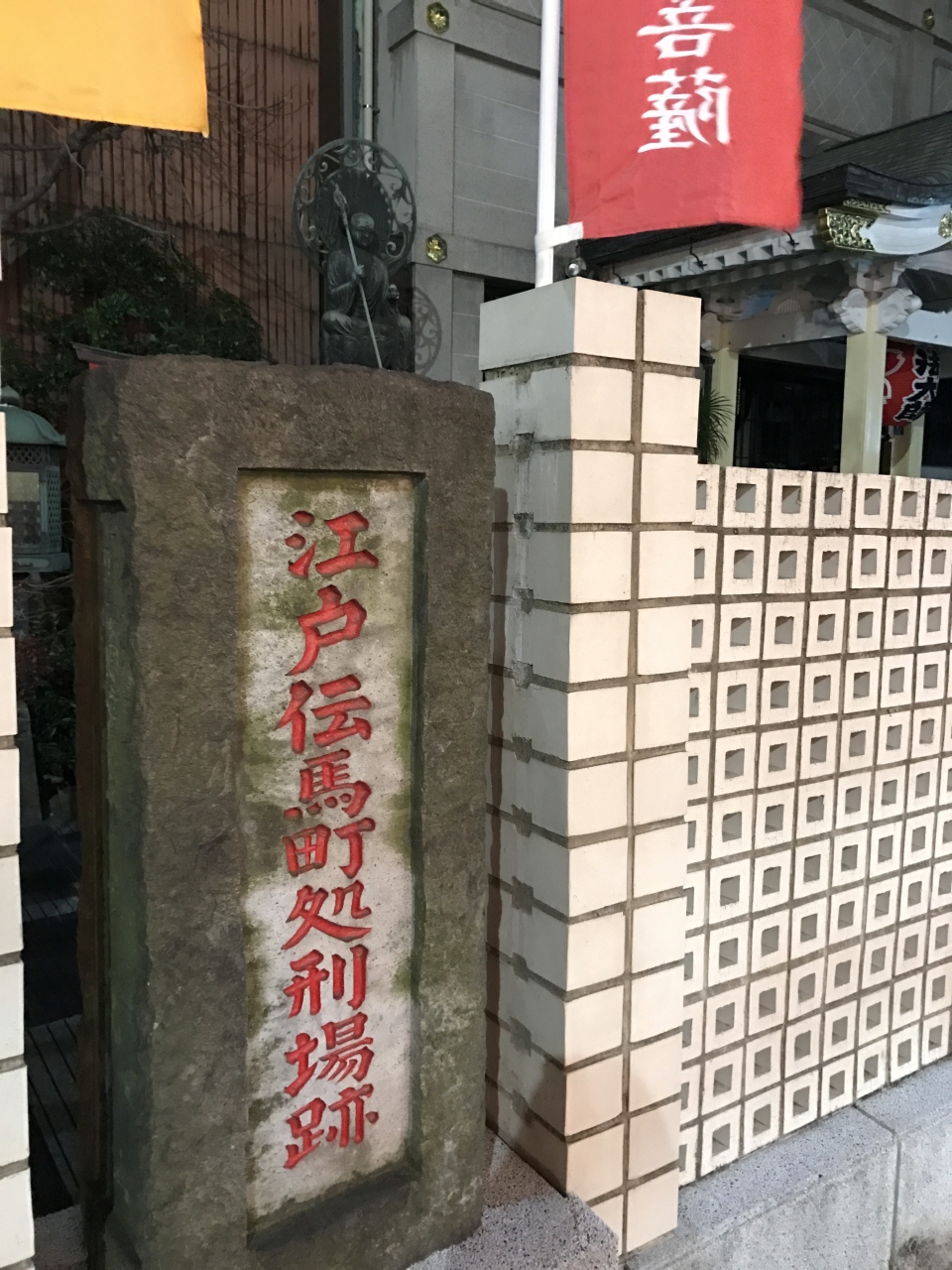 徳川幕府の時代、この場所に牢獄があったようで、小伝馬町処刑場跡の石碑がありました。御由緒にも書かれてい、安政の大獄でとらえられた勤王の志士や吉田松陰などがこの場で処刑され、そういった霊を鎮めるため、明治以降に建てられたのが大安楽寺だそうです。近くを通りかかった時、ふと処刑場跡の碑を見つけたので、お詣りもしてきました。お寺事態は小さく、周囲は雑踏です。