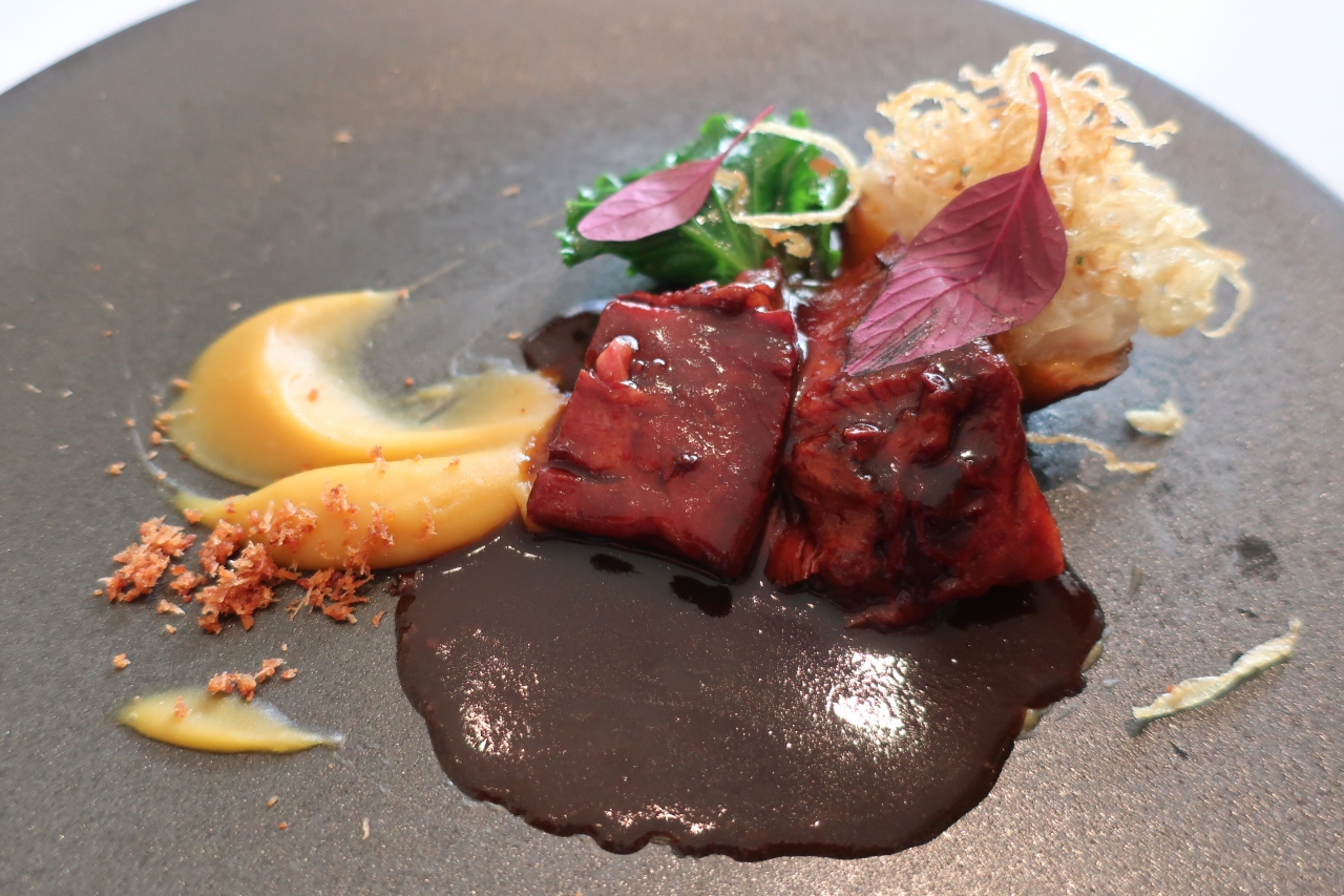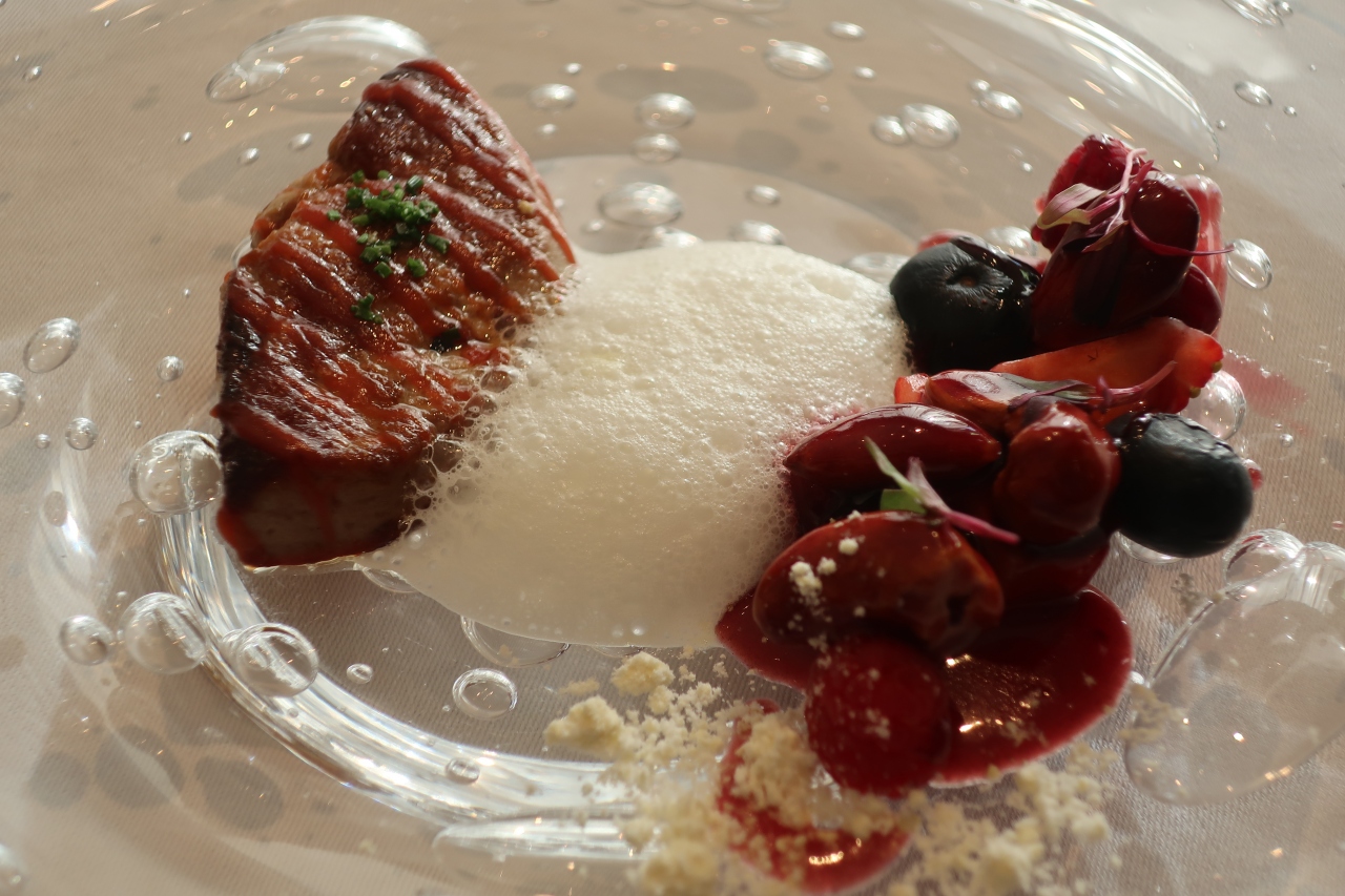 恵比寿と中目黒の間にある別所坂の坂上近くにあるレストランです。旧ハンガリー大使公邸を改装した住宅街にある広大なレストランです。以前から一度訪れたいと思っていたのですが、多くの週末は結婚式の会場として利用されている様で中々行く機会がなく、大晦日に近い年末やっと行くことができました。1階の室内からは広い庭園を見渡せ都心であることを忘れそうな雰囲気が良いです。鉄板焼きとフレンチがありますが、今回頂いたのはフレンチのコース。前菜、魚料理、肉料理、デザートのコース。いずれの料理も選択することができ、二人でいろいろな味を楽しむことができました。