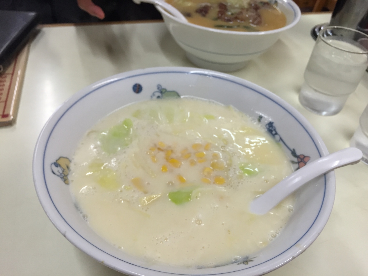 ランチタイムに訪問。田舎の中華屋さんといった雰囲気で、常連客っぽいお客さんがチラホラいました。今回は牛乳ラーメンを注文。でてきたラーメンは確かにミルキーカラー。食べてみると、コーンスープ味のラーメンでした。好きな味で、するする食べました。