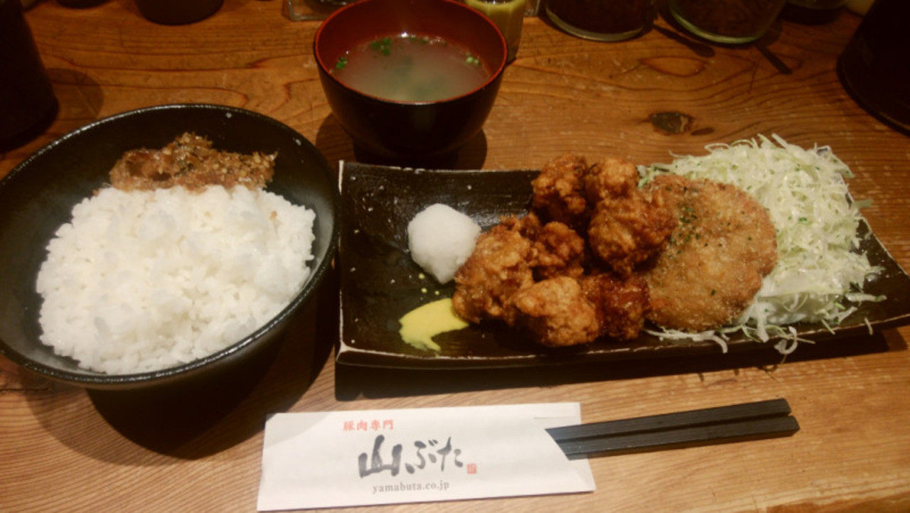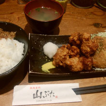 豚肉の唐揚げはタレに漬け込んで濃い味付けです。