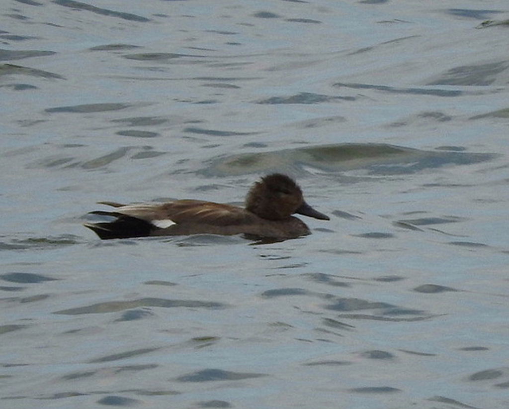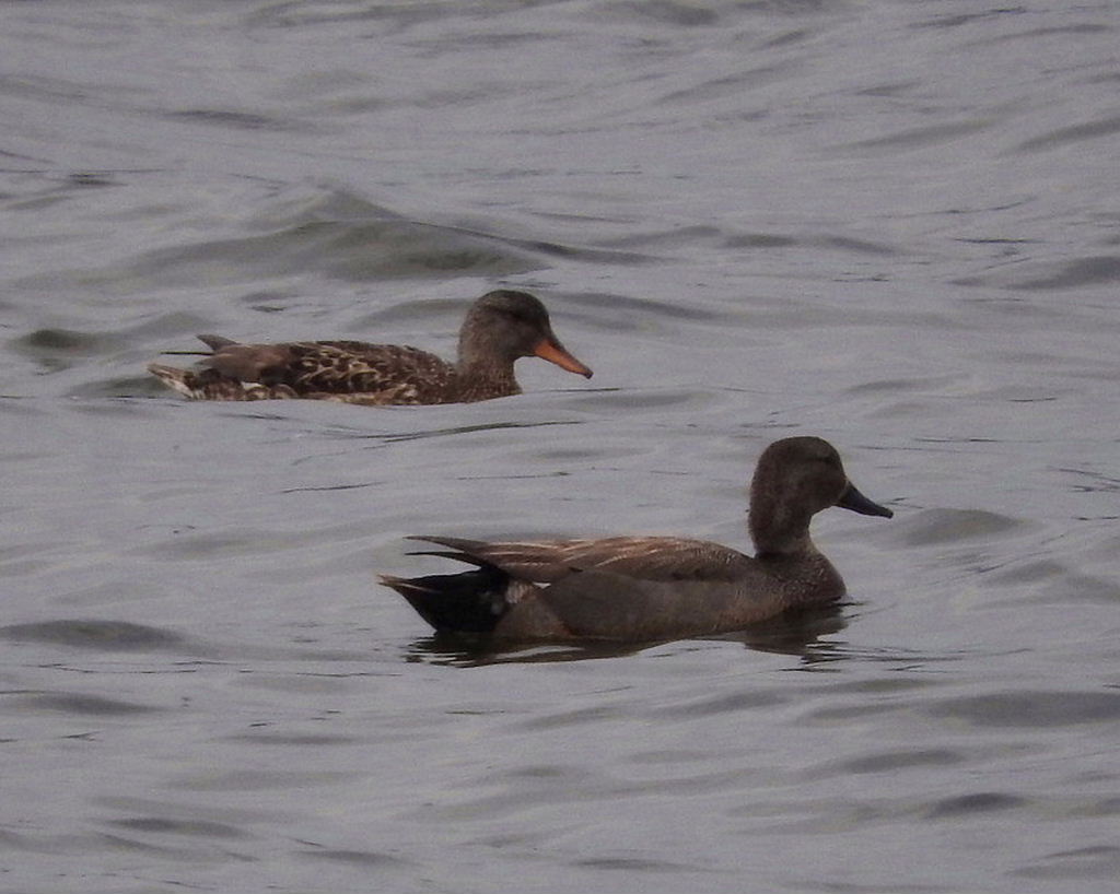 オカヨシガモのオスは、下尾筒(お尻の部分)が黒いので、バードウオッチャーの間では、俗に黒パンツと呼ばれています。オカヨシガモのメスは、一見、マガモのメスに似ているので、単独で見るとマガモのメスと勘違いする事もあります。