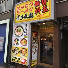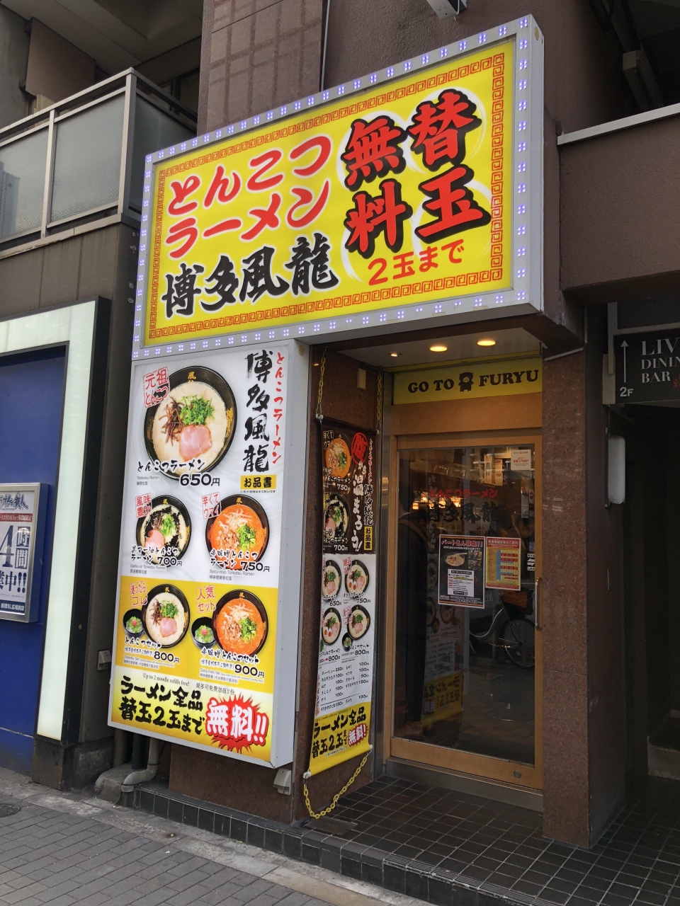 その昔、一世を風靡した博多とんこつラーメン。ここはそんな博多ラーメンがいただけます。家系やつけ麺など、いろいろと食べわけてますが、なんでんかんでん世代としては、やはりこの味も忘れられません。とんこつスープ、匂いこそ独特ですが、その匂いとは裏腹にスープはとてもクリーミー。細麺との相性もばっちりです。こちらは替え玉2個まで無料。2個は無理ですが1個は余裕。食べている人はほぼ男性。でもこの味、女性にも受けると思います。昼時は混んでますね。