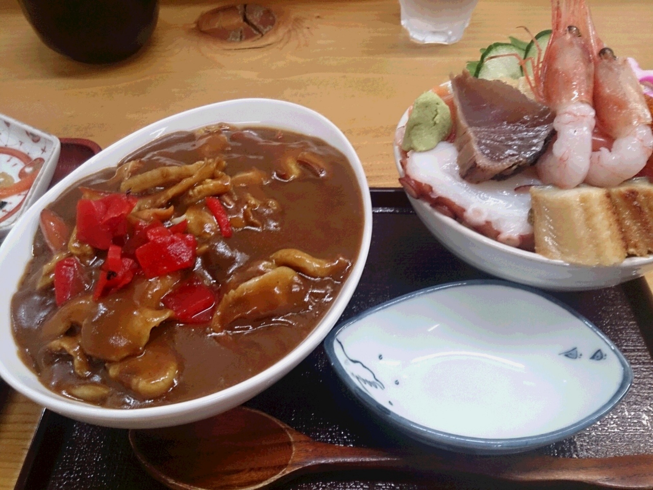 国道36号線を札幌から苫小牧に入り、そこから左折し港の方へ。こんなところに食堂があるのかと思うくらい何もないところに、お目当ての弐七さんがあります。ここは、海鮮がおいしいと評判のお店。中は、昼過ぎにもかかわらず、数人の客がいました。そして注文。海鮮がおいしいとは聞いていたのですが、近くの人が食べていた、ホッキカレーがとてもおいしそうに見えたので、思わず「ホッキカレー」を注文。出てきたホッキカレーを見て大感激。大きな皿に溢れんばかりにのカレーとその横には、お刺身の盛り合わせが付いてきました。これにはホントに大感激。食い合わせが悪いなどとは、まったく思わずいただきました。これなら文句をいう客はいませんね。おいしいカレーと苫小牧の新鮮な刺身。どちらかを選ぶのではなく、両方いただいた満足感がありました。次は何を頼もうか、楽しみなお店です。