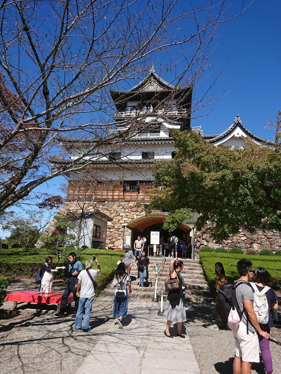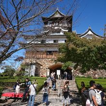 現存する天守閣で国宝に指定されている5城の内のひとつです。平成16年までは個人所有のお城でしたが現在は財団法人の所有になっています。入口では靴を脱いで登城する必要があり、階段がとにかく急です。