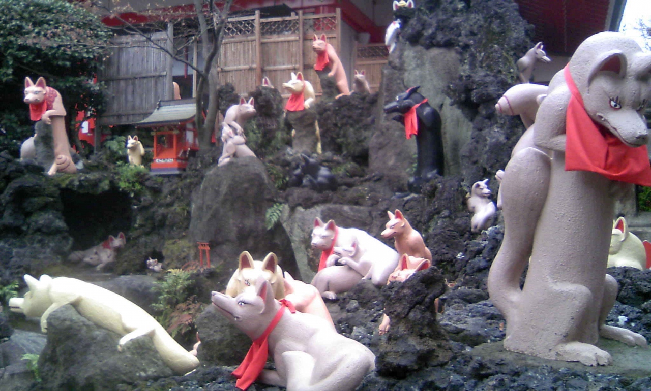 よく見ると黒かったり赤みがかっていたり、様々なポーズをした色々なタイプの狐がいます。