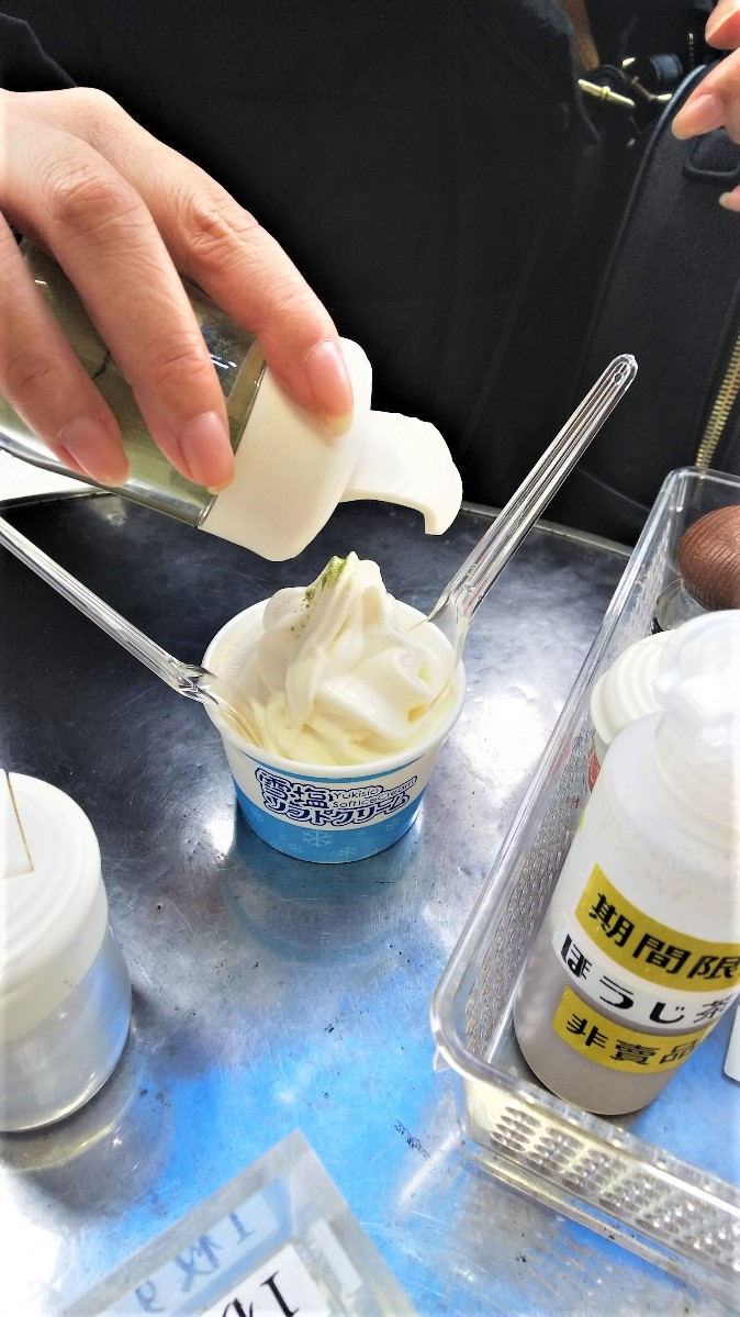 店内に置いてある「合わせ塩」を雪塩ソフトクリームにかけて食べるスタイルですが、色々試した結果、何もかけないで食べるのが1番美味しいと思いました(私の場合)。ちょっとお高めだけど、とても美味しいので大好きです。