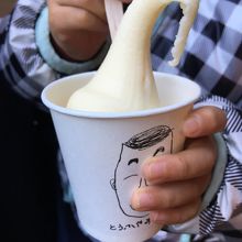 豆乳ドーナツの他には、豆乳ソフトクリームもありました。子供が食べたいというのでこちらも購入。食べた後に豆腐の香りが少しだけしますが、食べやすくクセもなくて美味しかったです。