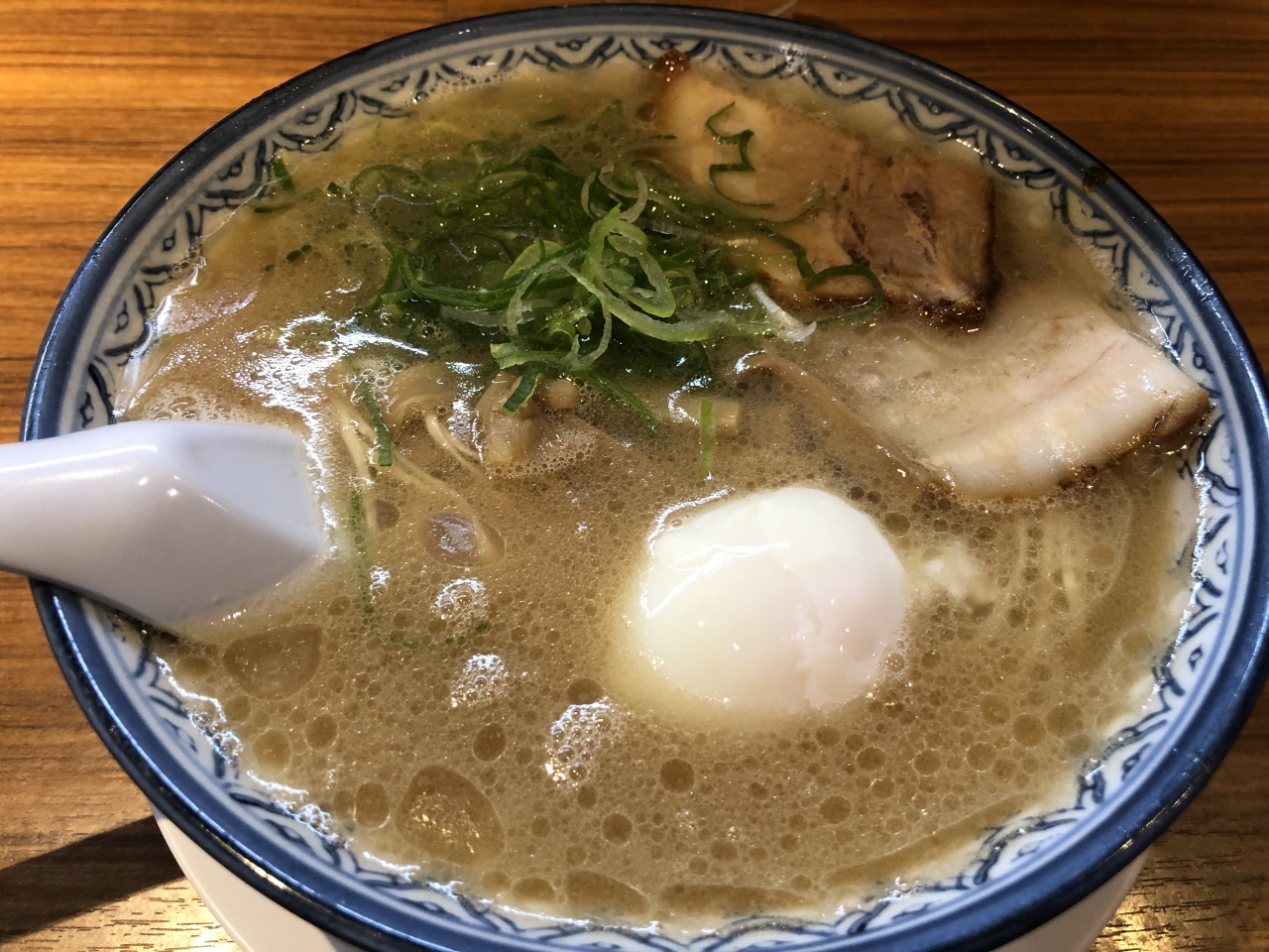 温玉入りラーメンをオーダーしました。細めの平麺が珍しい感じがしました。細麺が好きなので、良かったです。並を注文しましたが、一般的な「並」に比べると量が少なく感じました。替え玉やサイドメニューを注文するのがよさそうです。