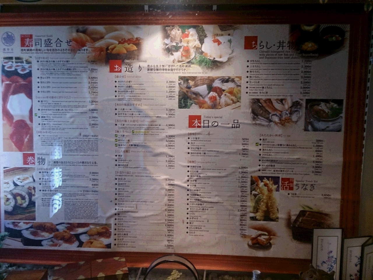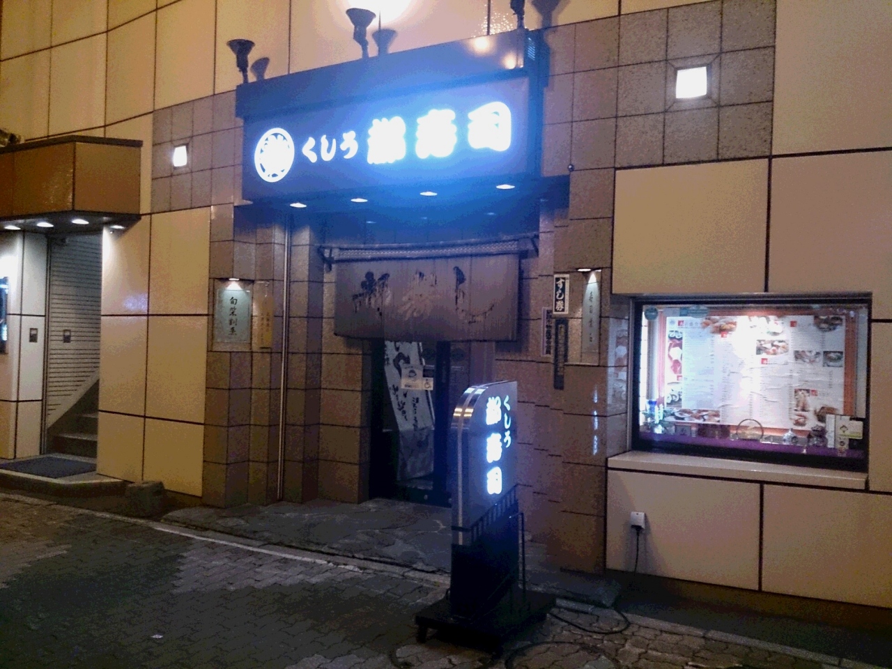 釧路の飲食店街にあるお寿司屋さんです。門構えでわかるように、釧路で一番のお寿司屋さんです。おいしいし、見た目も美しいのですが、予算は少し多めに取ったほうが良いです。昼の営業はなく、夜専門のお店なので遅くまでやっています。ネタは新鮮で、おいしいです。見た目も、美しく高級感があります。