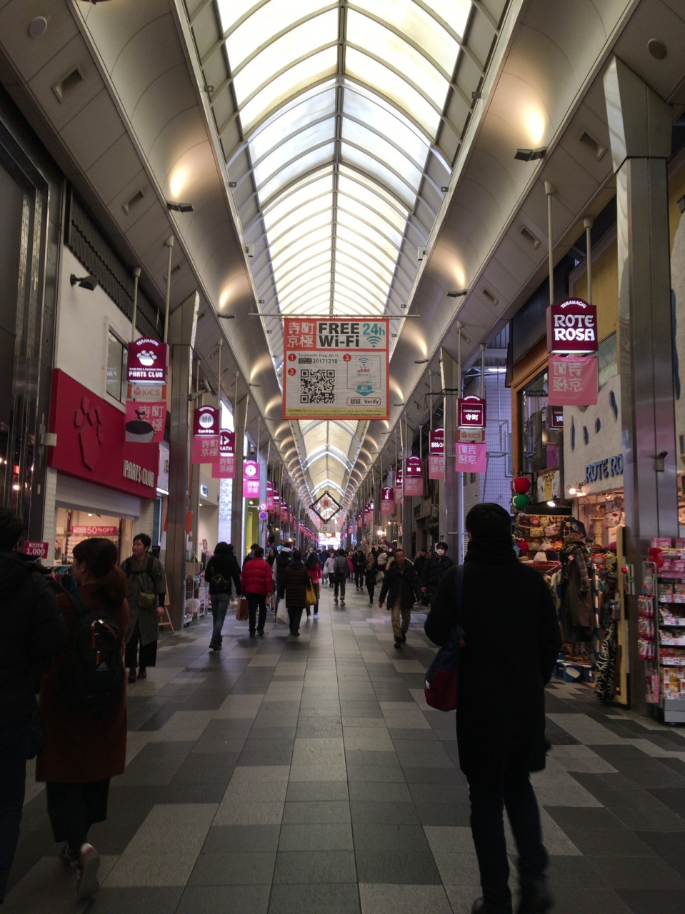 今まで知らなかったのですが、京都にも色んな商店街があるのですね。商店街はアーケードになっていて、飲食店、洋服店など色々なお店が並んでいました。