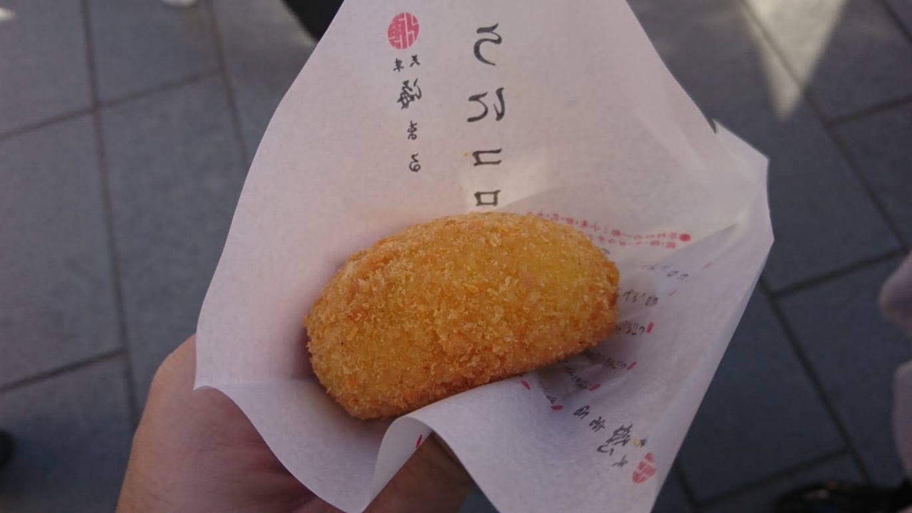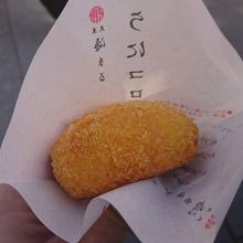 熊本城を見学して数十分歩いた後、疲れて休憩したかったのでここでビールとウニコロッケを買って一休みしました。ほかの店舗を利用している人もいますが、いすや机があり一休みできるコーナーになっているのでのんびりできました。