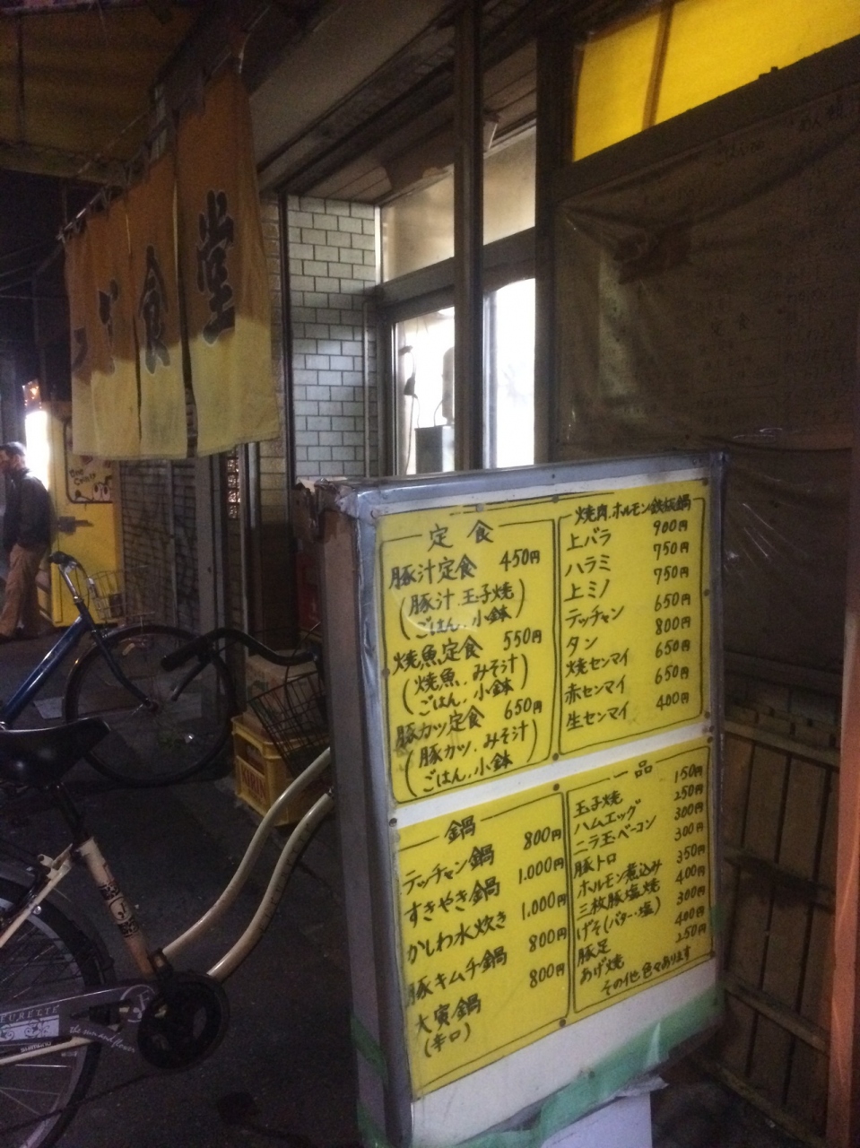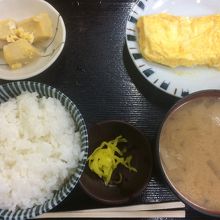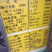 朝6時過ぎに行ったら、ほぼ満席でビール飲んでいる人もいました。壁にメニューがたくさん貼ってあり格安で食べることが出来ます。朝だったので、豚汁定食を注文。豚汁は家庭的な味で具たくさん、ふわっとしたたまごも付いていました。