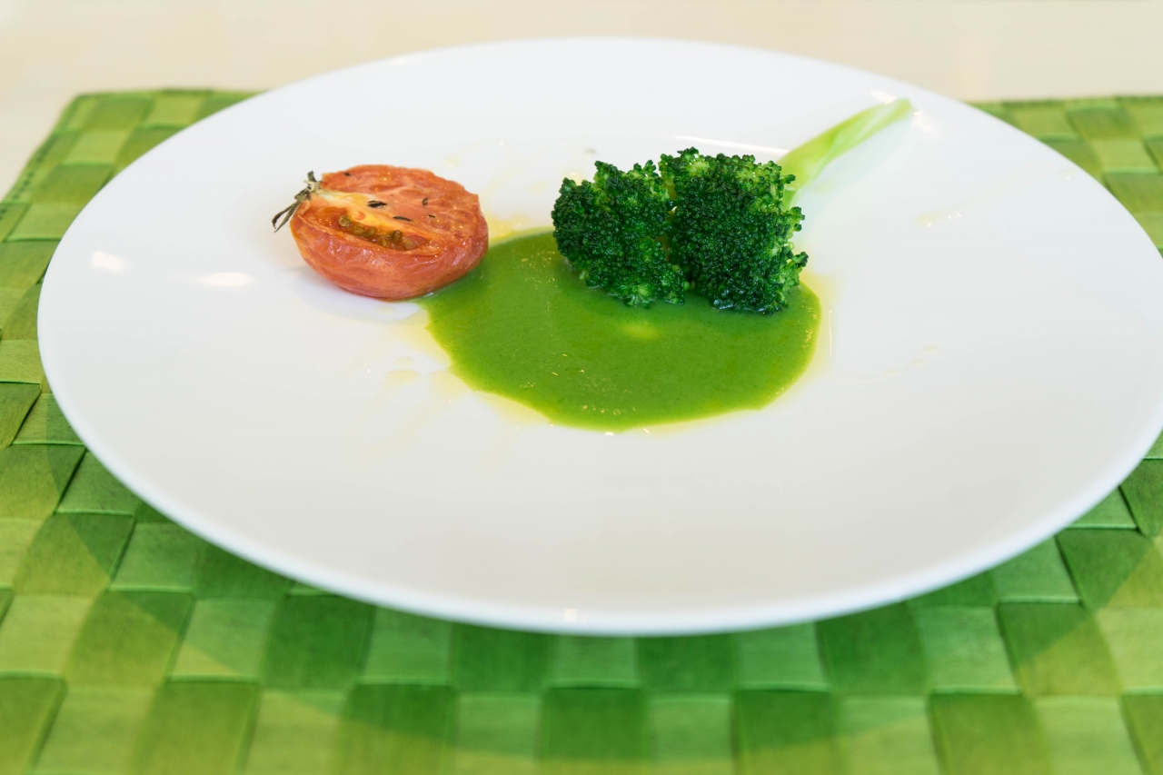 目の前で鍋から茹で上げたブロッコリーを盛りつけてもらったり、管状のマシュマロをカットしてもらったり、食後のデザートが予想を裏切る食感だったり。