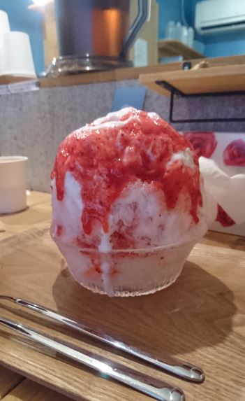 JR駒込駅から10分程の下町の商店街、霜降銀座商店街の入り口にあるカウンターのみのかき氷屋さんです。夏場は多少の行列がありますが回転は速いと思います。女性向けの甘いかき氷ですね。行く度にちょっとづつ形が違うのは愛嬌です。