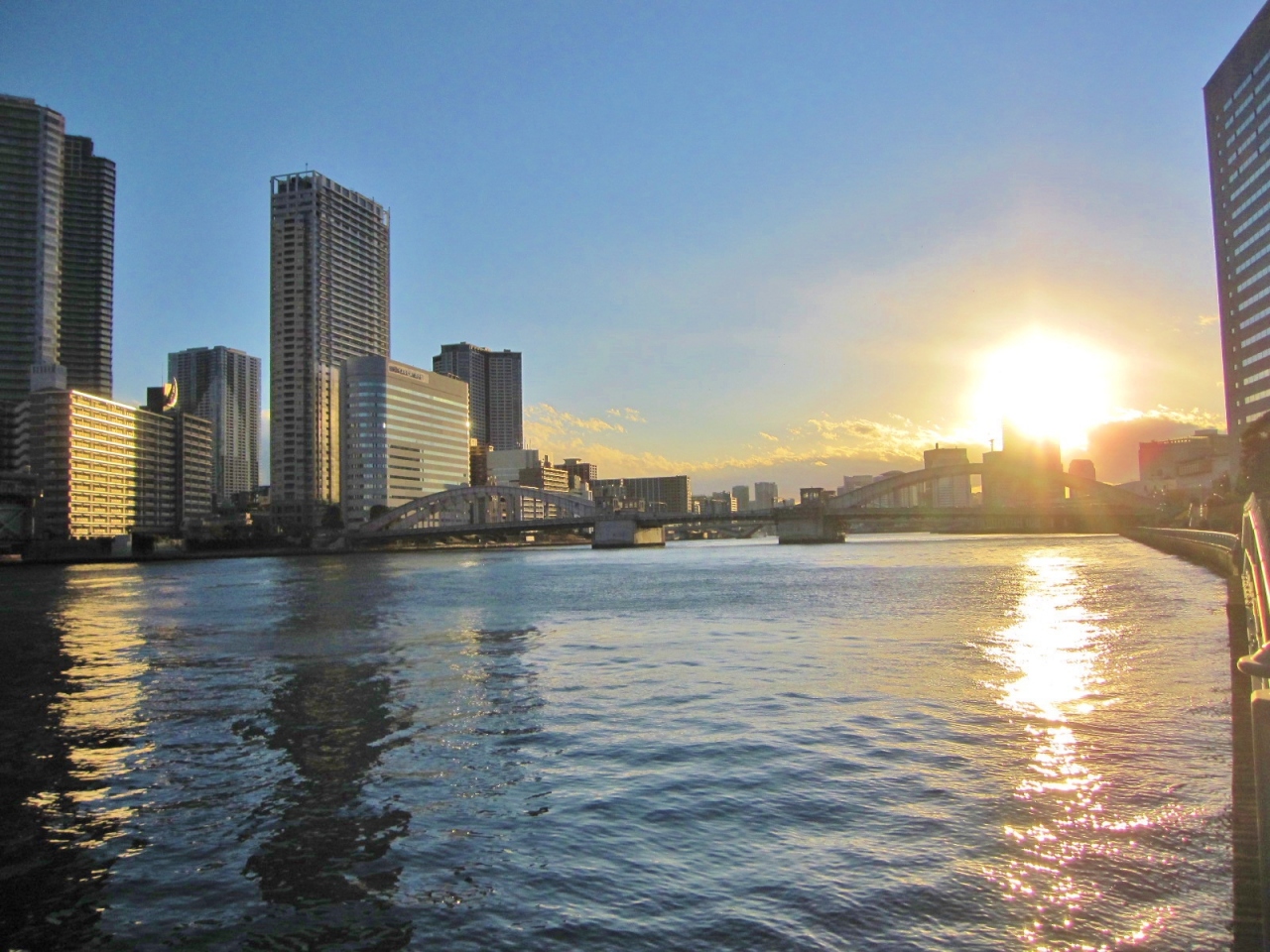 隅田川を行き交う水上バスや隅田川の周りに立ち並ぶ高層ビル群の景色など見ていて飽きないところが良いです。また、勝鬨橋などの意匠も凝っていて良かったです。