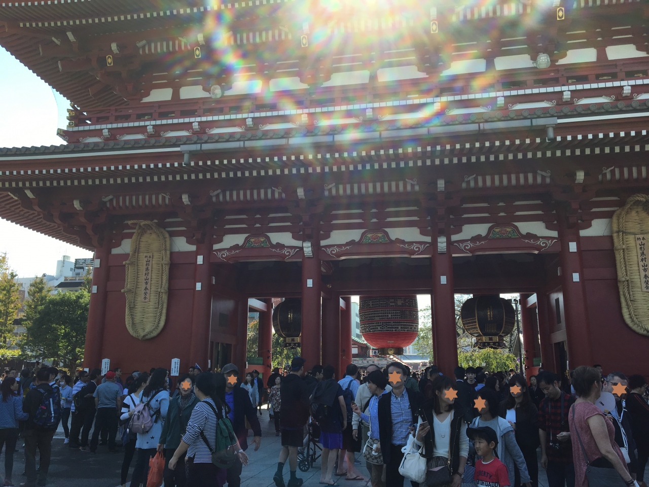 雷門から入り賑やかな仲見世を歩いてゆくと前方に見える朱塗りの門が宝蔵門です。門の両端に仁王像が立っています。
