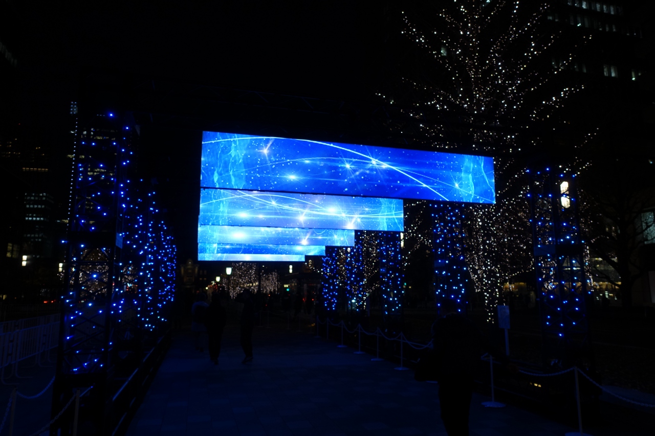 東京駅から皇居方面にまっすぐに伸びる「行幸通り」は、年末恒例のライトアップの季節でした。あまりに観光客が多かったので先に食事を済ませ、消灯間近の21時前に再度足を運びました。整列が義務付けられ、歩行コースも定められており、自由に見ることは出来ません。近くで眺めると、思いのほか普通の光景で、やや期待外れという印象でした。