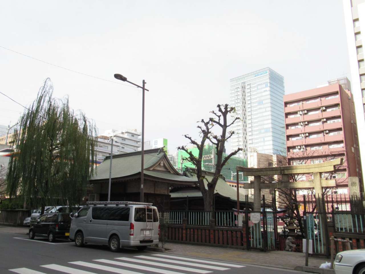 万治2年 (1659) 神田川掘割工事の際、現在地に遷座、同時に柳の木も土手に移され江戸の名所になった。
