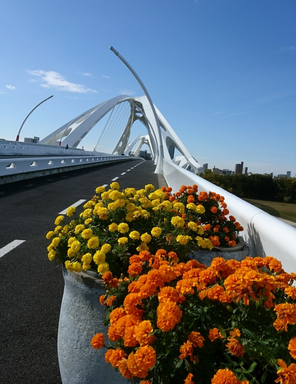 橋のたもとにはマリーゴールドがキレイに咲いていました。