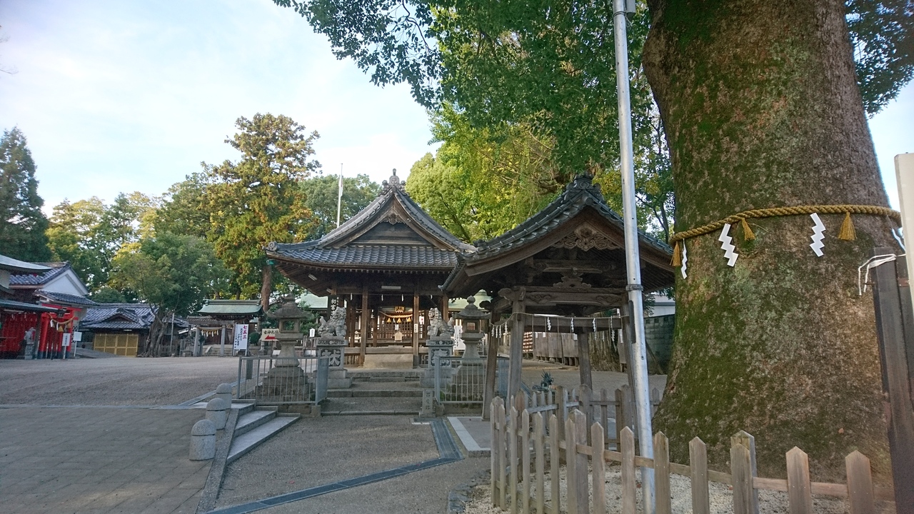 神社の境内に駐車場もあり、広い境内には大きなクスノキが迫力があります。