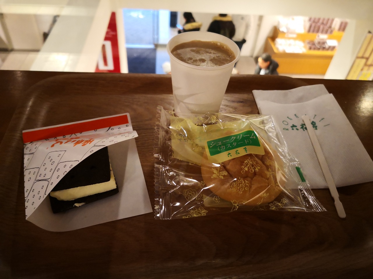 1階がショッピングエリアで2階がカフェエリア。クッキーに挟んだベイクドチーズケーキが美味しそうなのでいただきました。
