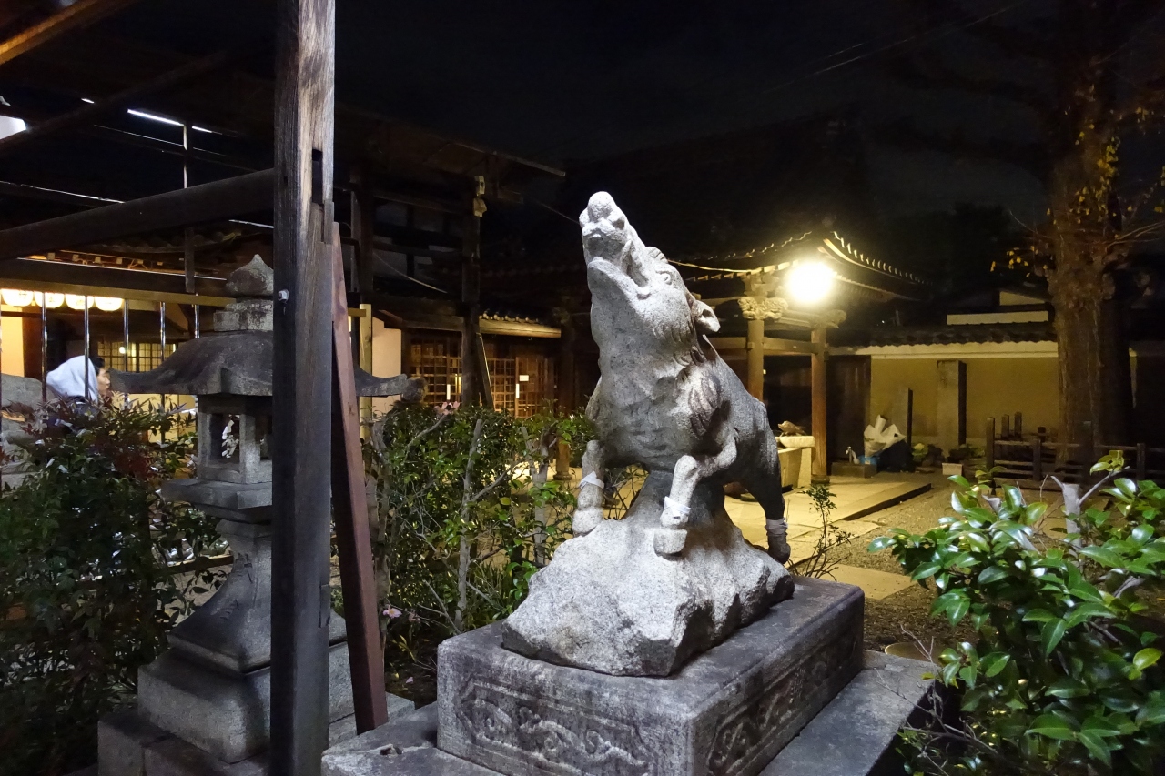 夜空に浮かび上がる大きな提灯、空に向かって吠えているかのようなイノシシの姿は特に記憶に残っています。