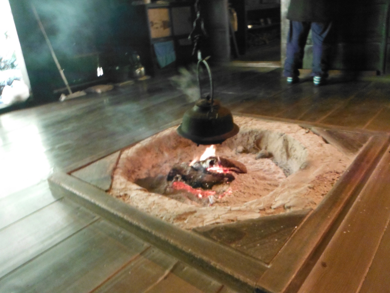 私が行った時は冬場の1月後半だったこともあり、囲炉裏には火が焚かれて暖をとれるようになっていました。