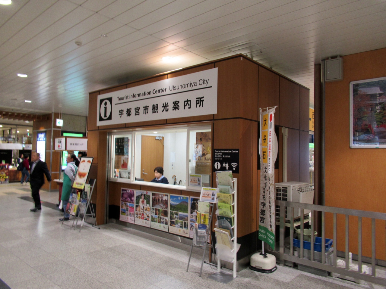 新幹線の改札口を出ると右側に観光案内所のボックスがありました。失礼ながら、観光で宇都宮を訪れる人は多くはないのでしょう、観光案内所のたたずまいにも、あまり力が入っていなさそうに感じました。観光客獲得に本腰を入れないと…と、宇都宮が初めての私も少し心配になりました。