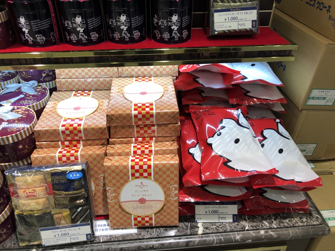 年末年始はお年賀のめでたそうなパッケージのお菓子が可愛らしくてオススメです。