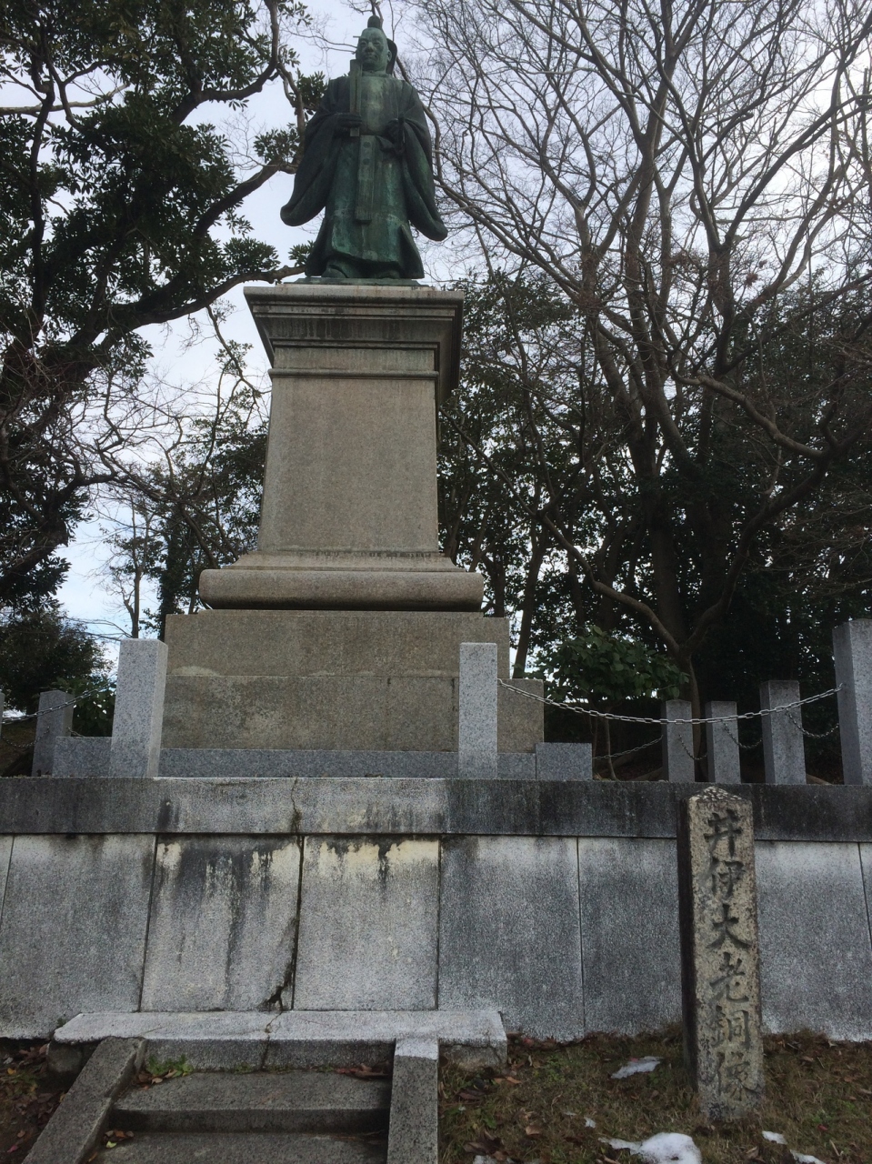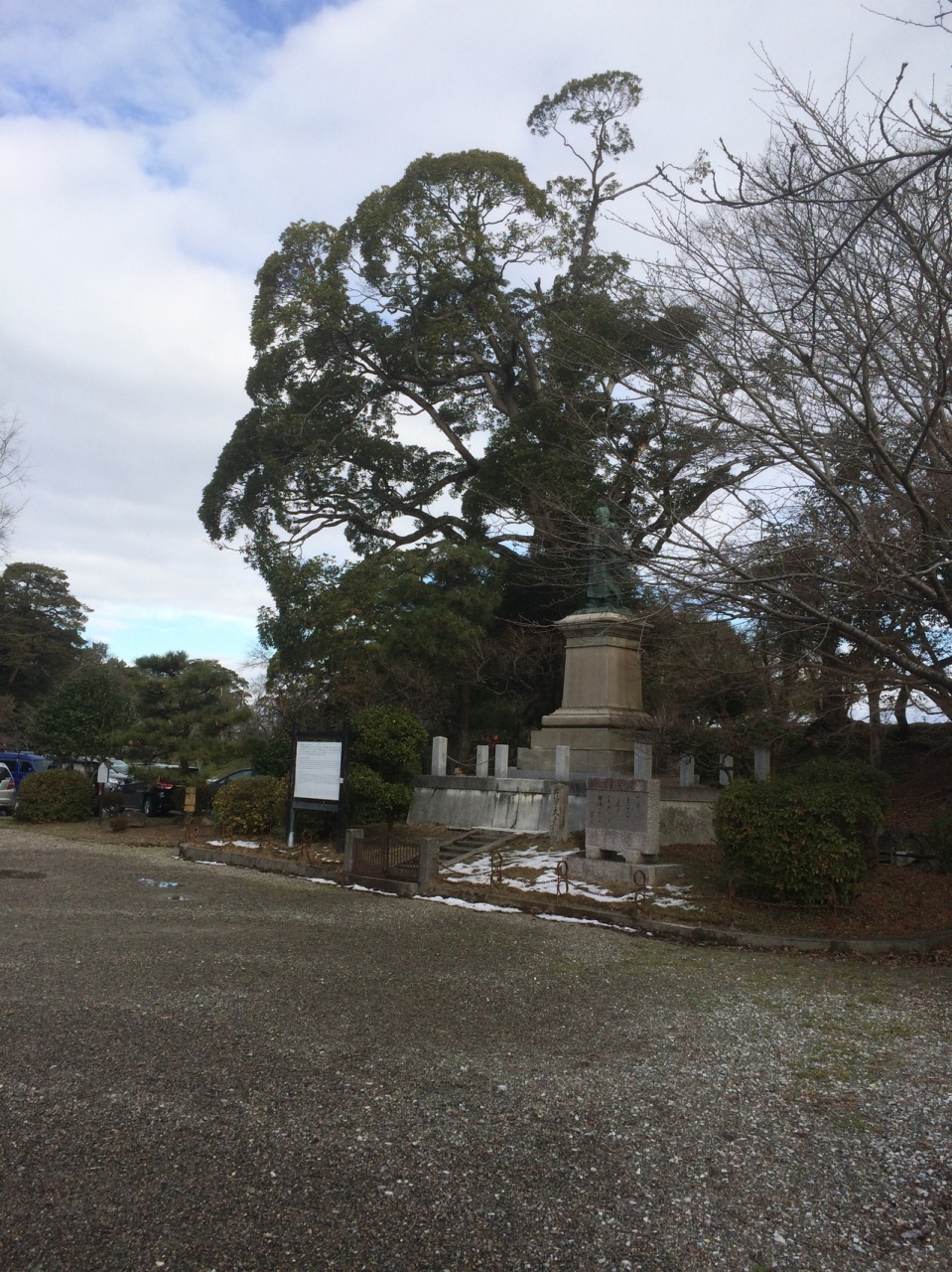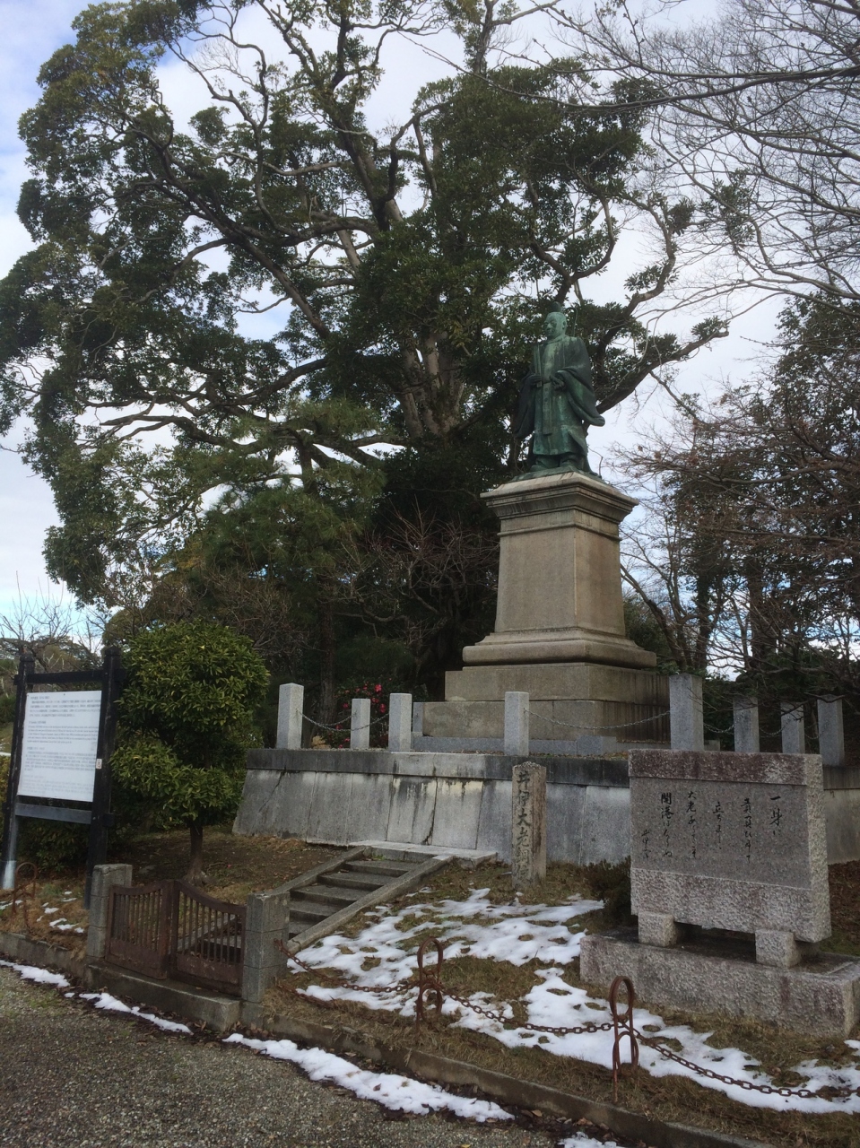 城内の駐車場前に建っている大きな像で隣には旧藩士の石碑もあります。大きな台座の上にのっていて、正装した真面目な姿をしていました。像の前には日本語の他に英語、中国語、韓国語の説明文があります。像としては普通の像でした。