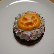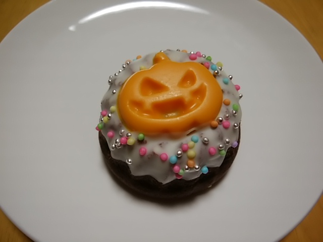 そのお店でハロウィンもの、ジャックオーランタンのケーキを発見。日持ちもするし、かわいいので1つお買い上げ。
