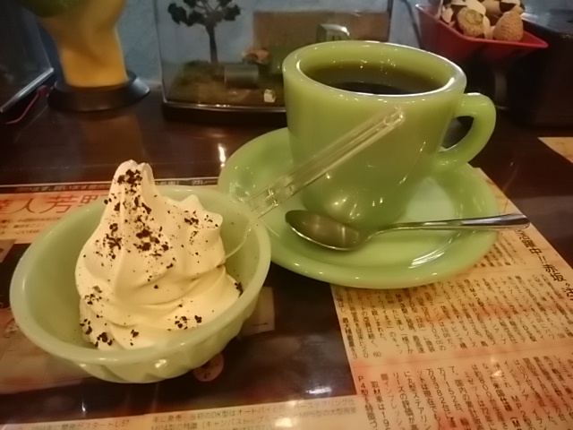 小さなモカソフトと、コーヒーがセットで500円(税込)っていうのがあったので、それをお願いしました。