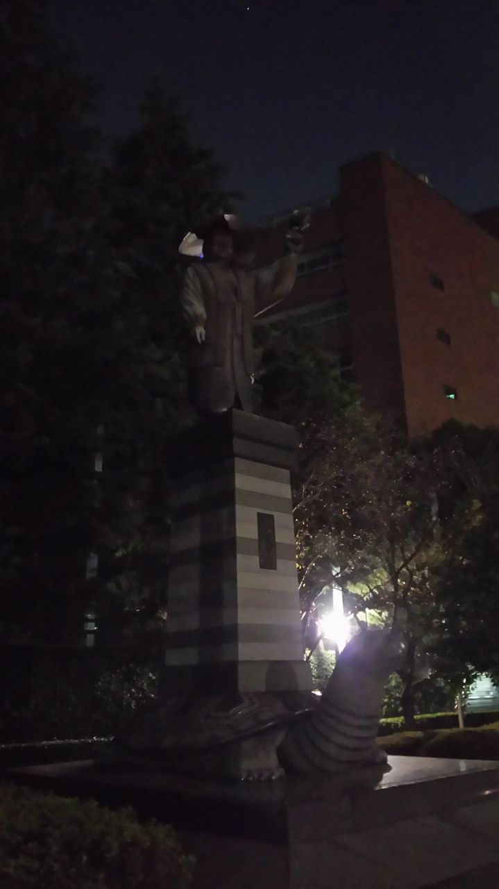 亀に乗った家康の像です。なかなか斬新なデザインだなと思います。