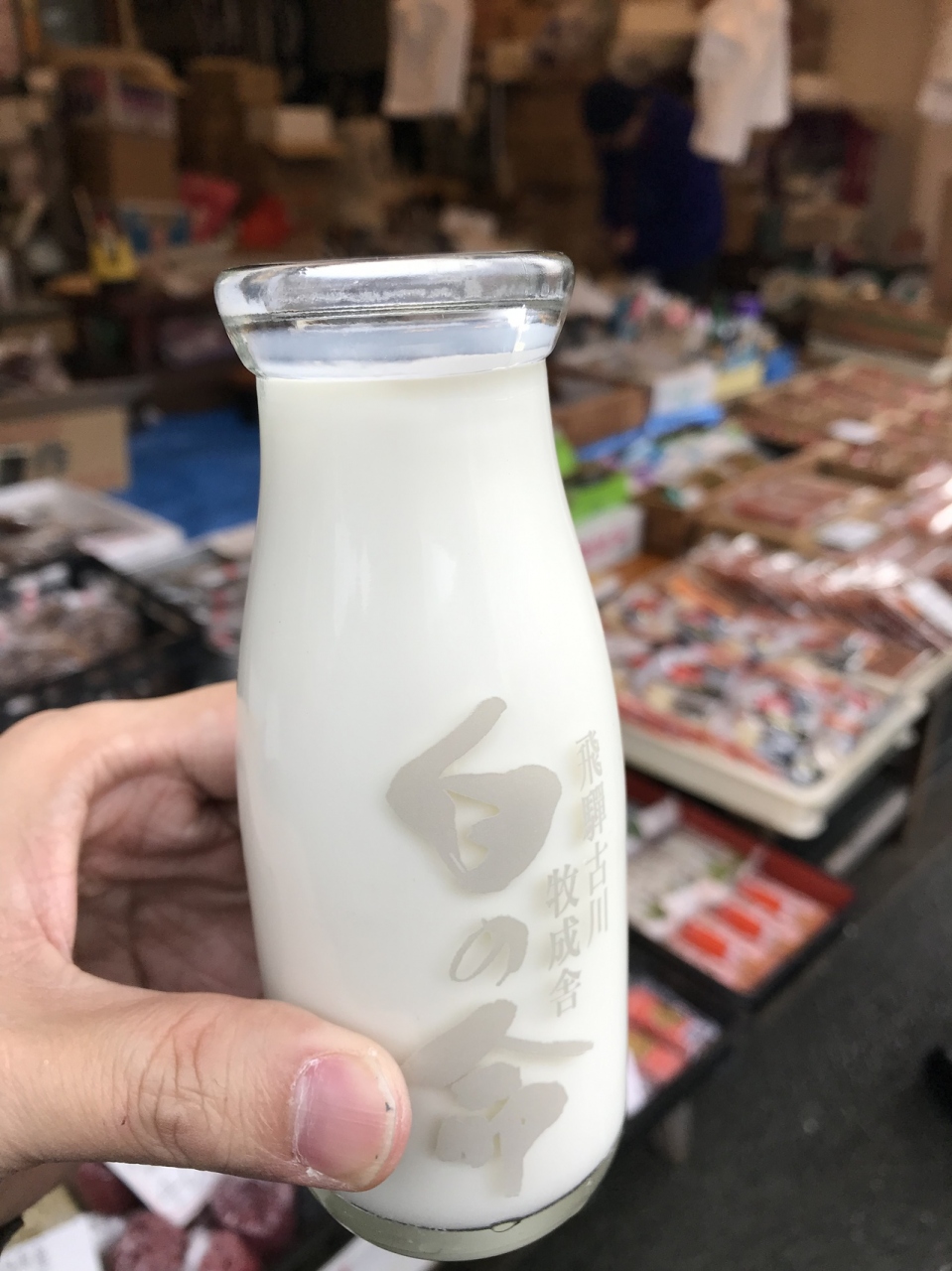 飛騨高山の宮川朝市で売ってました。低温殺菌牛乳。