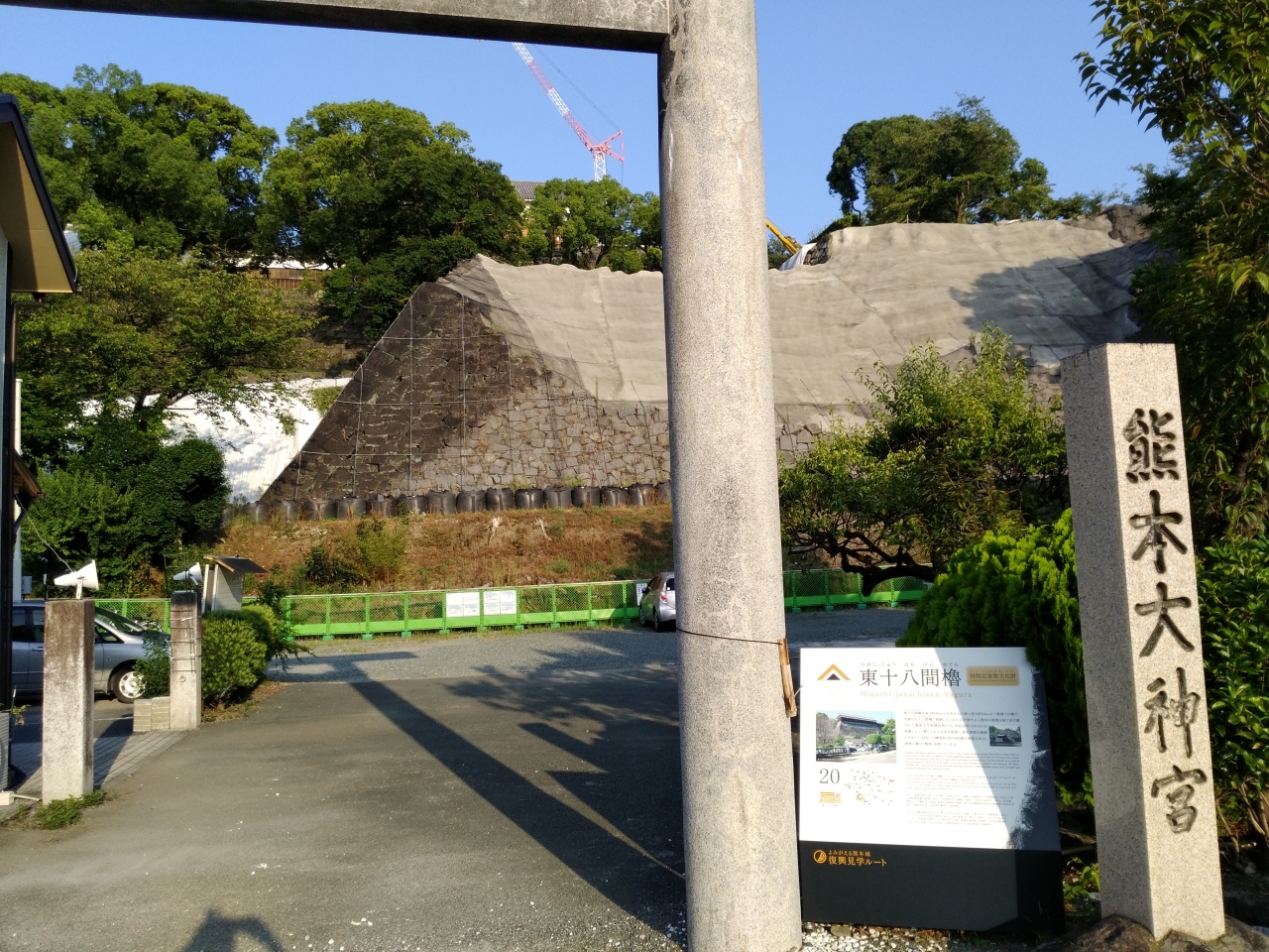 夏期休暇の一人旅。九州一回りの旅。佐賀、長崎から熊本に来ました。熊本城の横に車を停めて熊本大神宮に参拝をしました。まだ震災の爪痕が深く残っており、目の前の東十八間櫓も崩れて見る影もありません。熊本大神宮で復興のお祈りをしてきました。