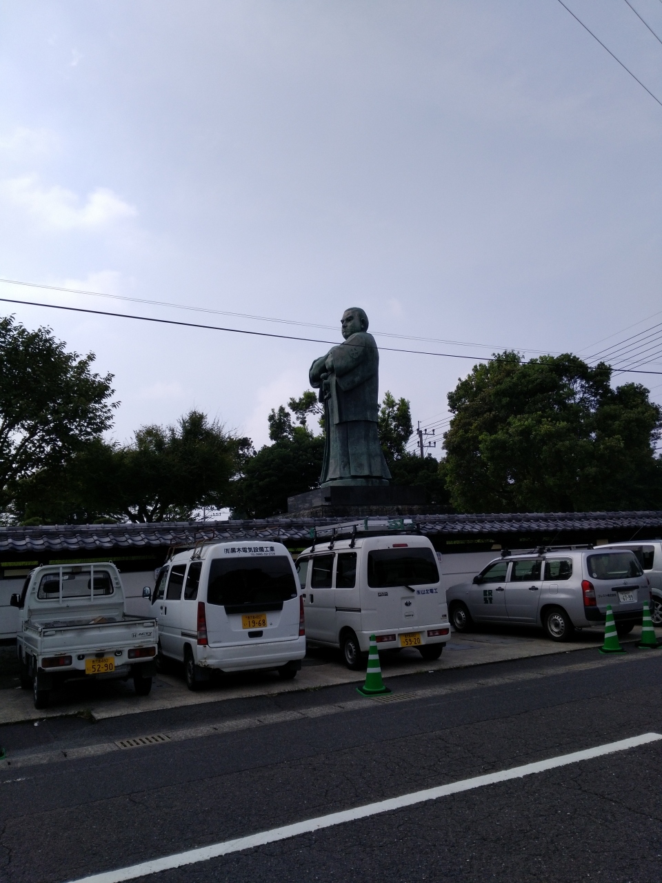夏期休暇の一人旅。九州一回りの旅。佐賀、長崎、熊本から鹿児島へ。九州自動車道を降りて、鹿児島空港へ向かいました。鹿児島空港の近くにある西郷公園に立ち寄り。ここには巨大な西郷隆盛像があります。がっちりと腕組みをしている西郷隆盛さんが見られます。像は10メートル以上の高さだそうです。とても立派な貫禄ある西郷さんを見ることができました。