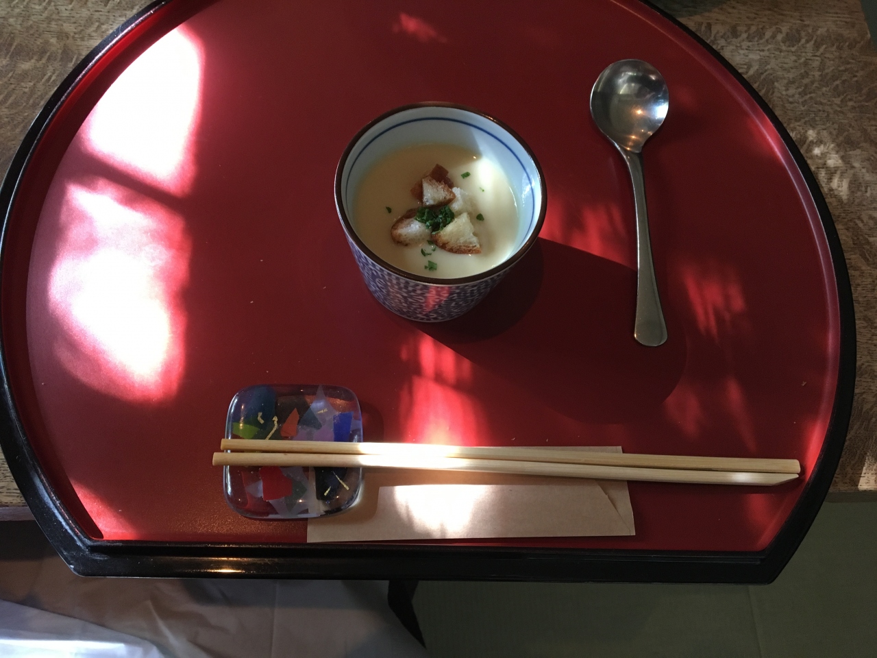 お箸と有田焼で食す和食のようなフレンチのランチメニューは