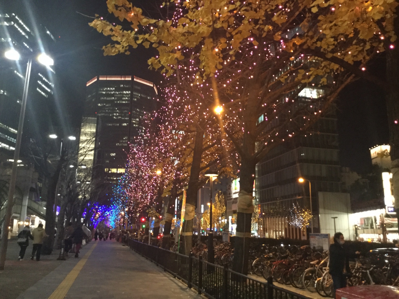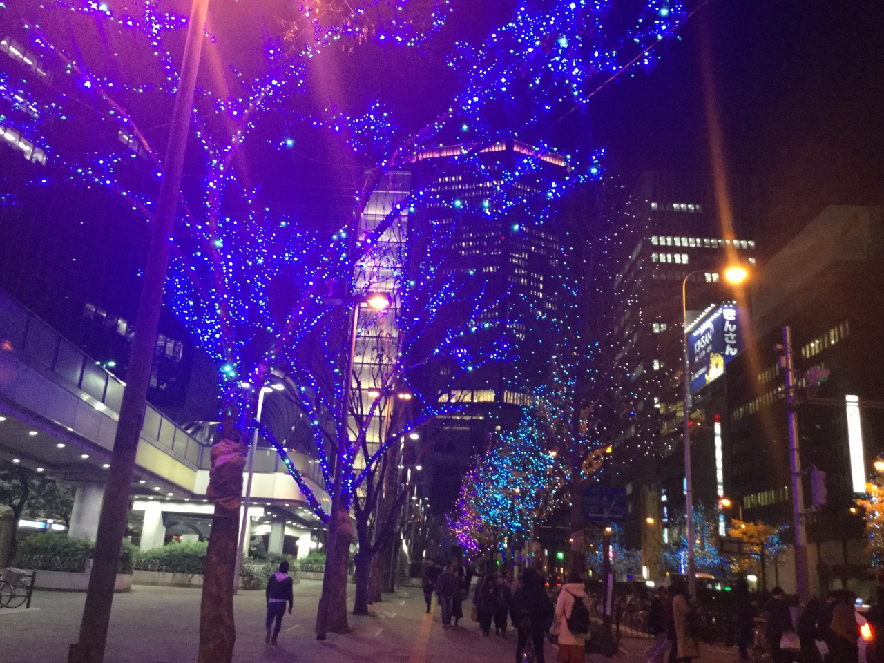 大阪駅近くの御堂筋のイルミネーションを12月に見る事が出来ました。イチョウ並木がお洒落に彩られ光のシャワーを浴びているようなひと時でした。人に溢れている大阪の街の中心の所なのに不思議とその一角は、違う土地に来たような、夢のイルミネーションの世界に酔えます。色彩のセンスと、降って来る様な演出が美しすぎて、心に熱くいつまでも残ります。