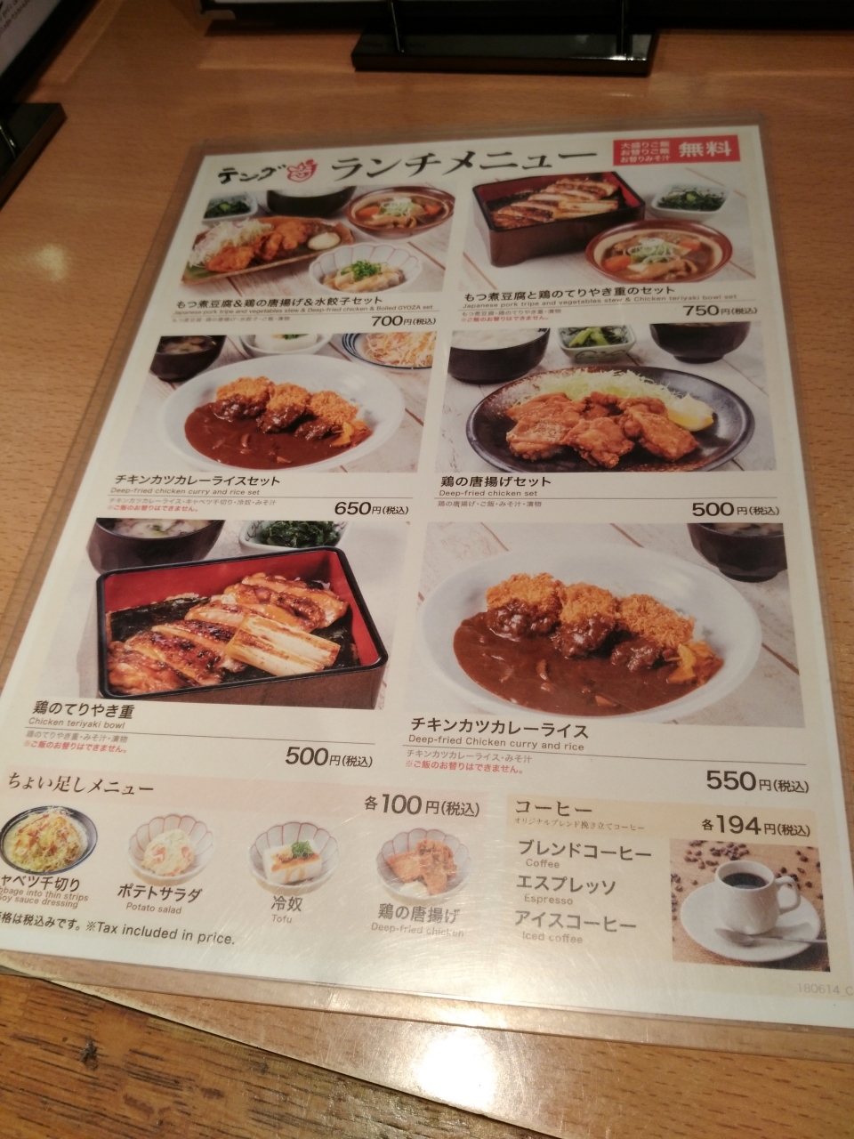 神田駅を出て歩いて5分以内にある「テング酒場 神田店」で昼食としました。テング酒場は神田駅界隈に数件あります。お店は広くて座席数多いです。ランチメニュからお得な鶏の唐揚げセットを注文。なかなかのボリュームで満足です。