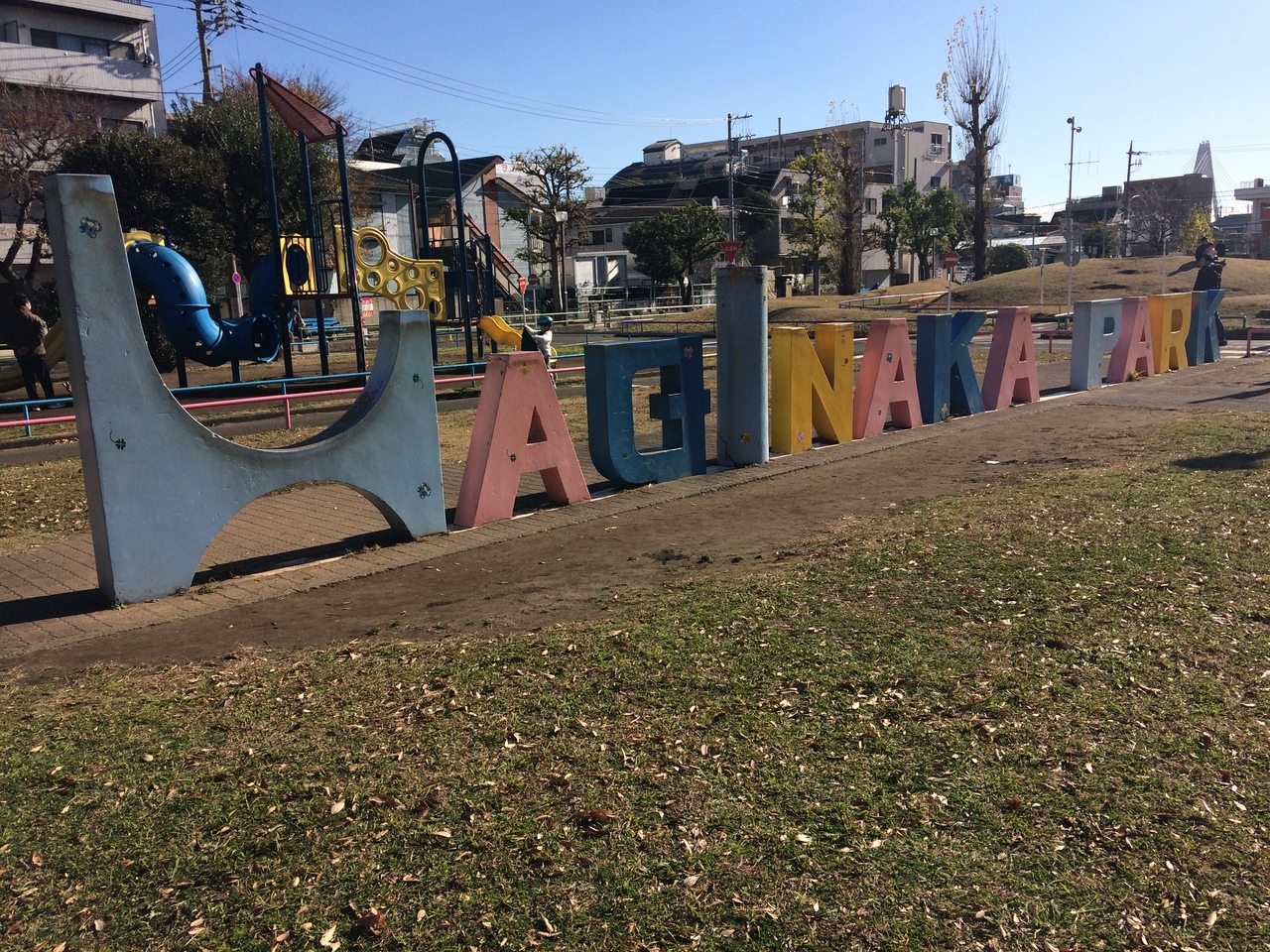 公園だから当たり前といえば当たり前なんですが、少子化の影響もあって子供が疎らやいなかったりする公園が多いです。しかし、寒空の中でも、ここの公園は親子で楽しそうに遊んでいる姿が見られて、なぜかホッとしました。子供の交通教育のためか、自動車教習所のような施設がありました。