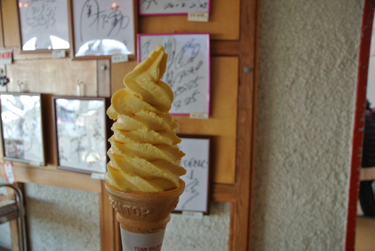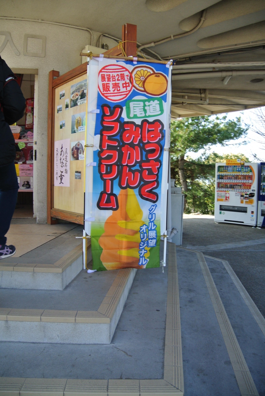 千光寺公園の円形の展望台の二階にあります。瀬戸内といえばやはり柑橘系をということで、グリル展望台オリジナルのはっさくみかんソフトクリームを食べました。けっこう柑橘系の味が強くて爽やかな味でした。ぜひ試してみてください。